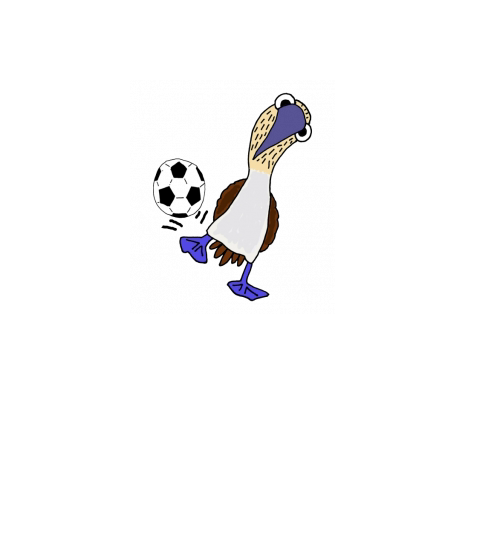 funny blue footed booby bird playing soccer
