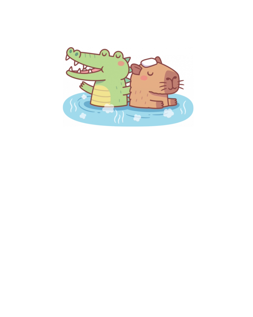 Funny Crocodile And Capybara Chilling In Hot