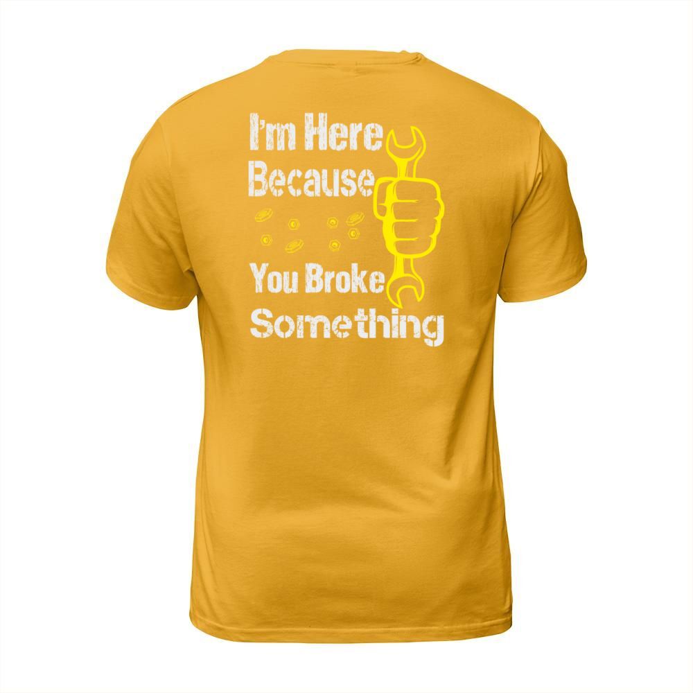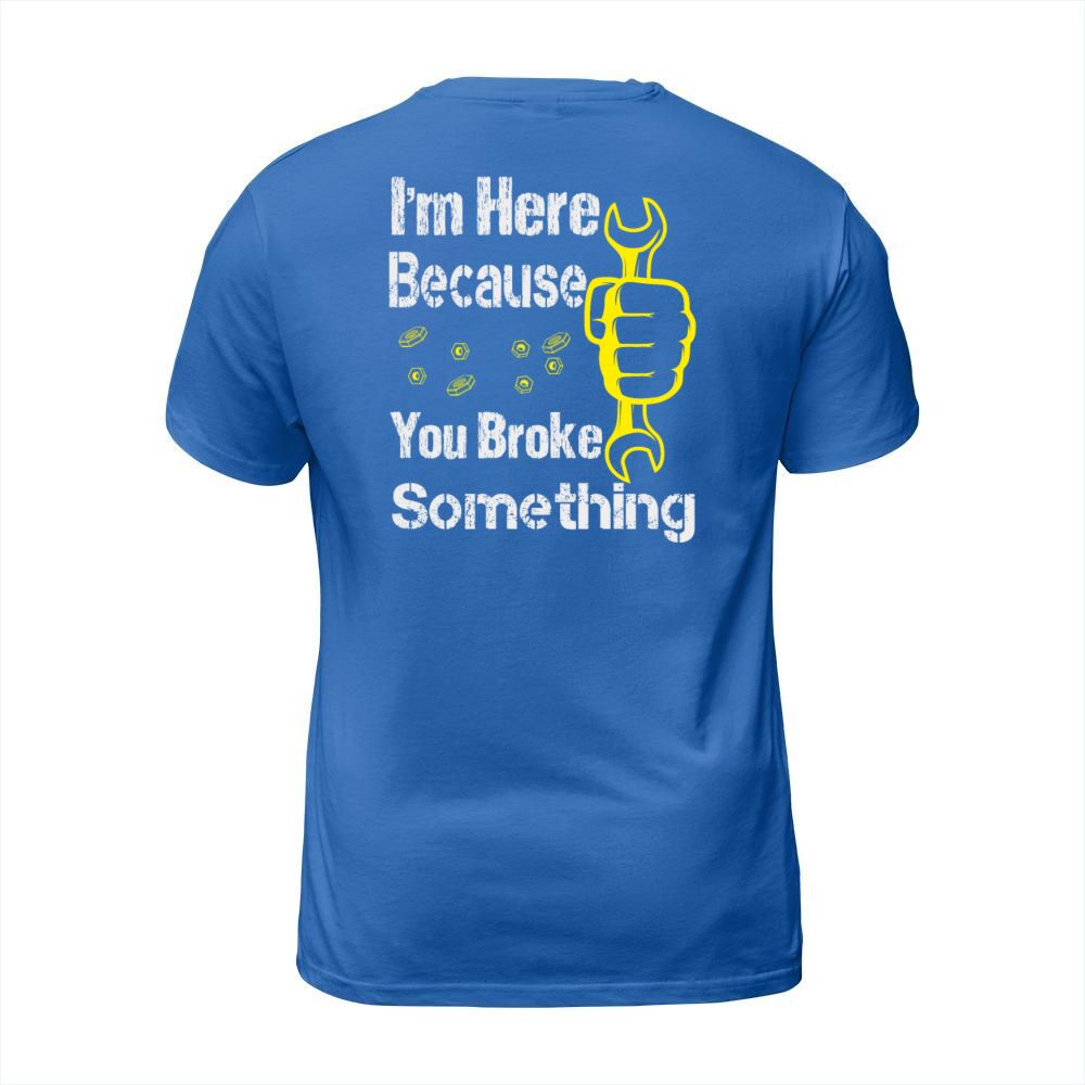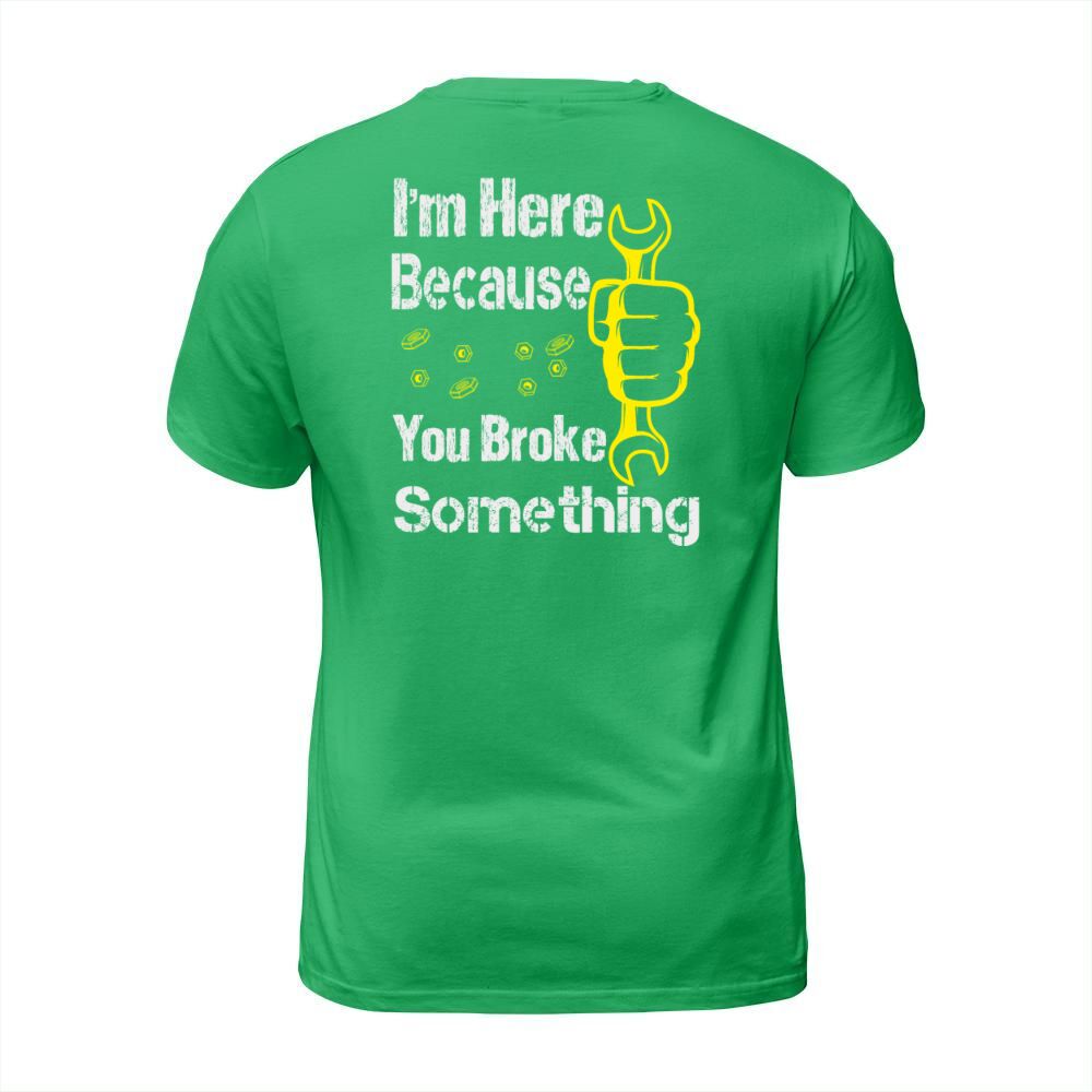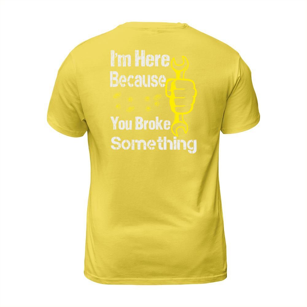 Shop funny Im Here Because You Broke Something Men's T-Shirt custom made just for you. Available on many styles, sizes, and colors.