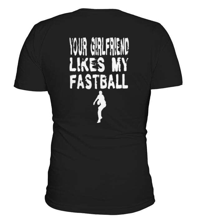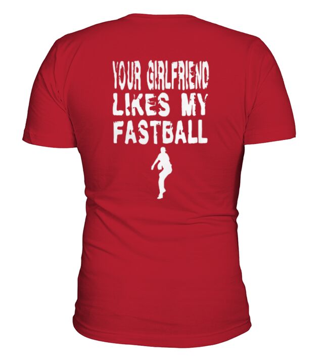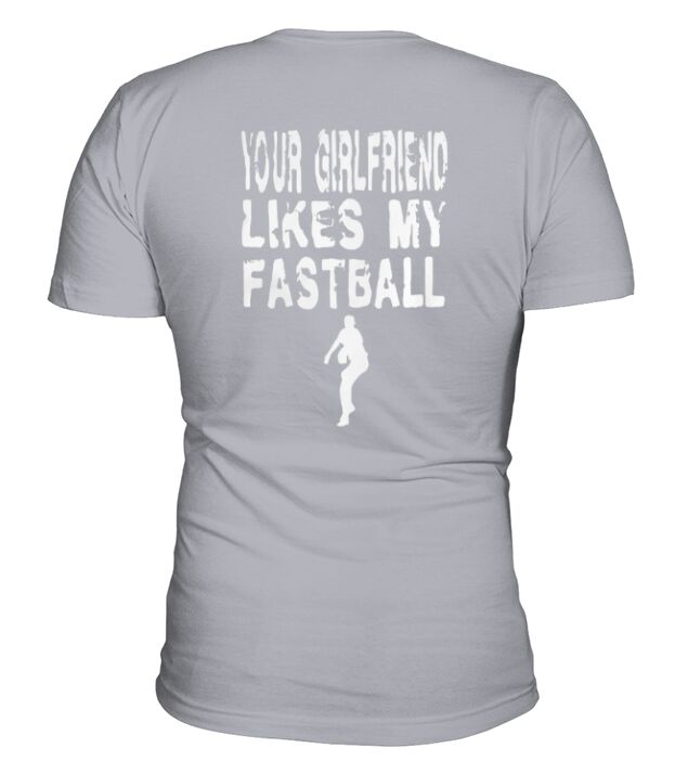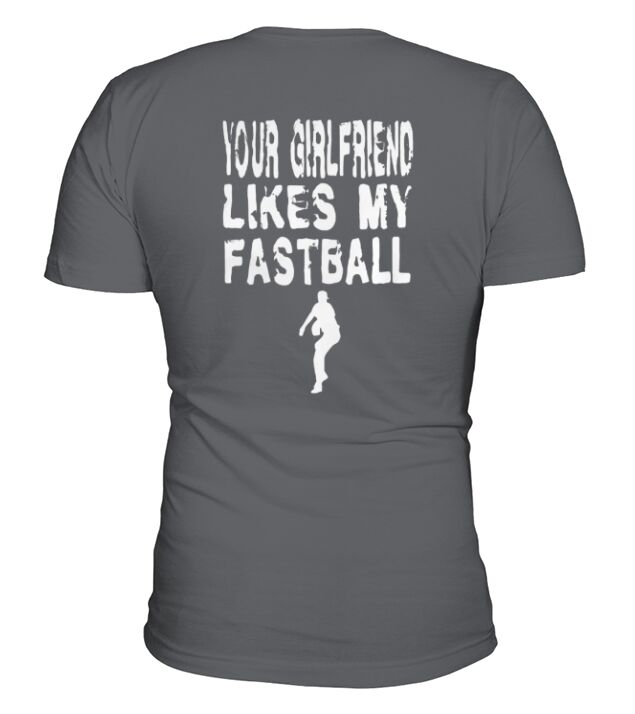 Shop Funny Pitcher T Shirt - Your Girlfriend Likes My Fastball V-Neck T-shirt custom made just for you. Available on many styles, sizes, and colors.
