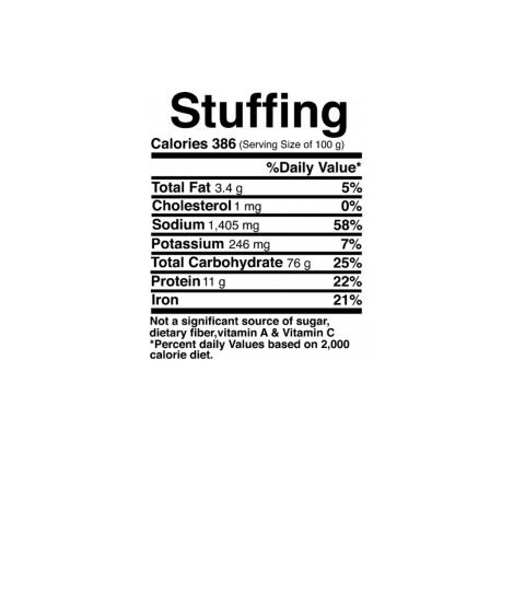 Funny Stuffing Actual Nutrition Facts Thanksgiving