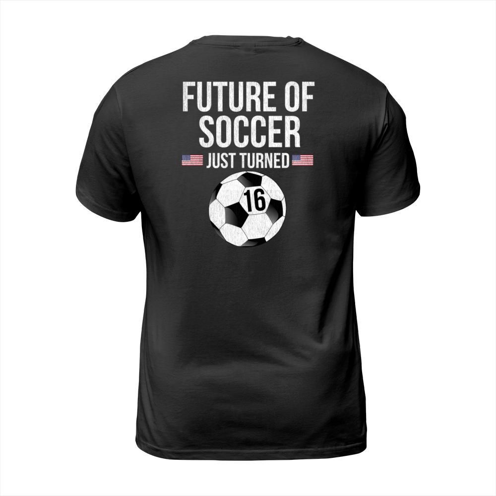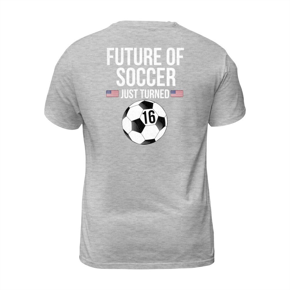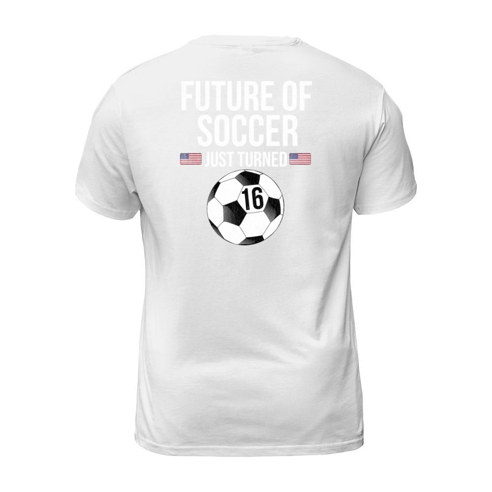 Shop Future Of Soccer Just Turned 16 Men's T-Shirt custom made just for you. Available on many styles, sizes, and colors.