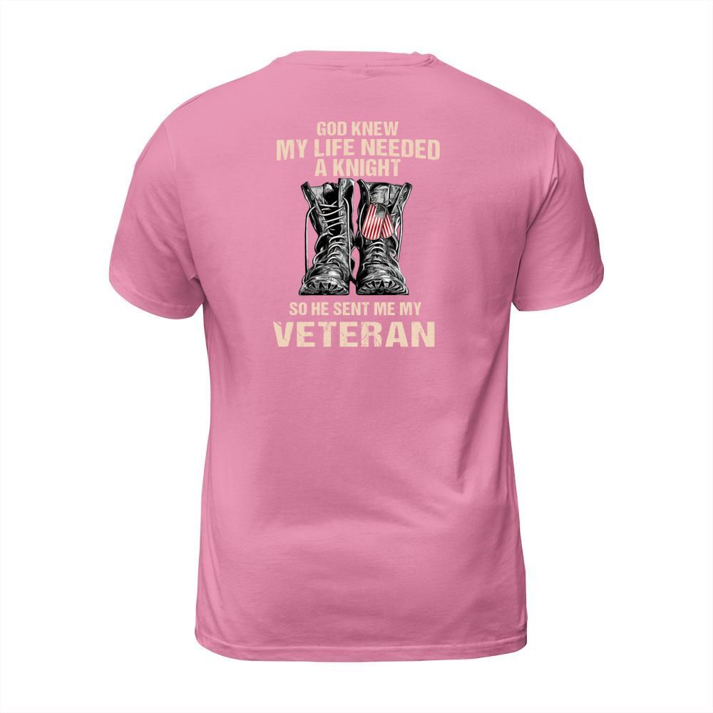 Shop God Knew My Life Needed A Knight So He Sent Me My Veteran T-Shirt Unisex custom made just for you. Available on many styles, sizes, and colors.
