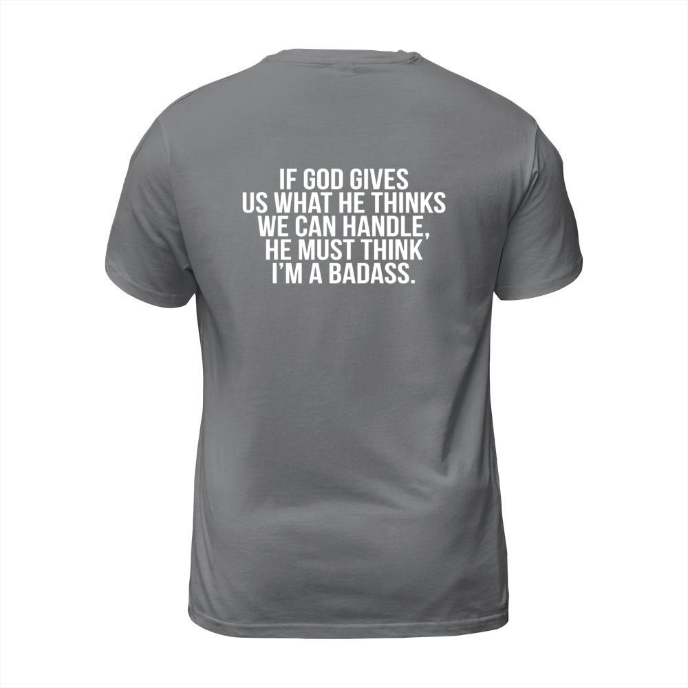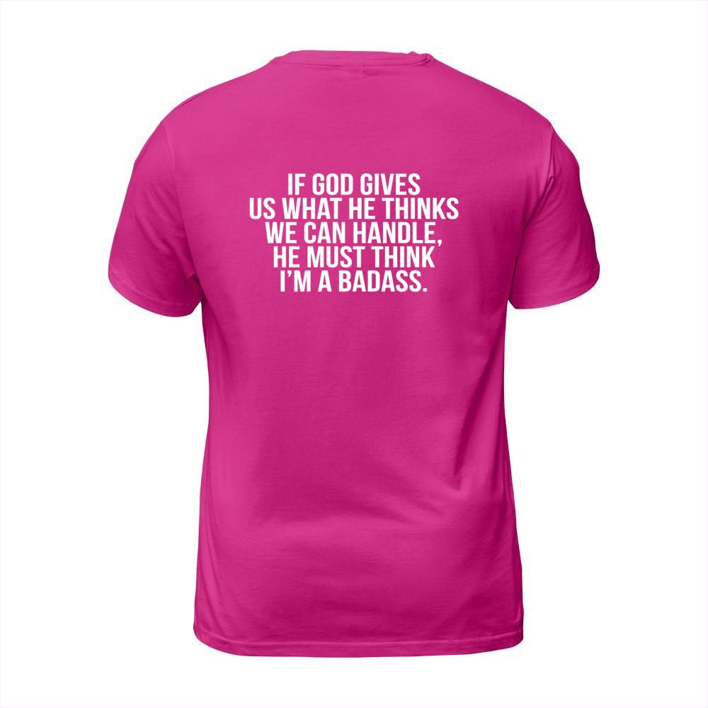 Shop God Must Think Im A Badass T-Shirt Unisex custom made just for you. Available on many styles, sizes, and colors.