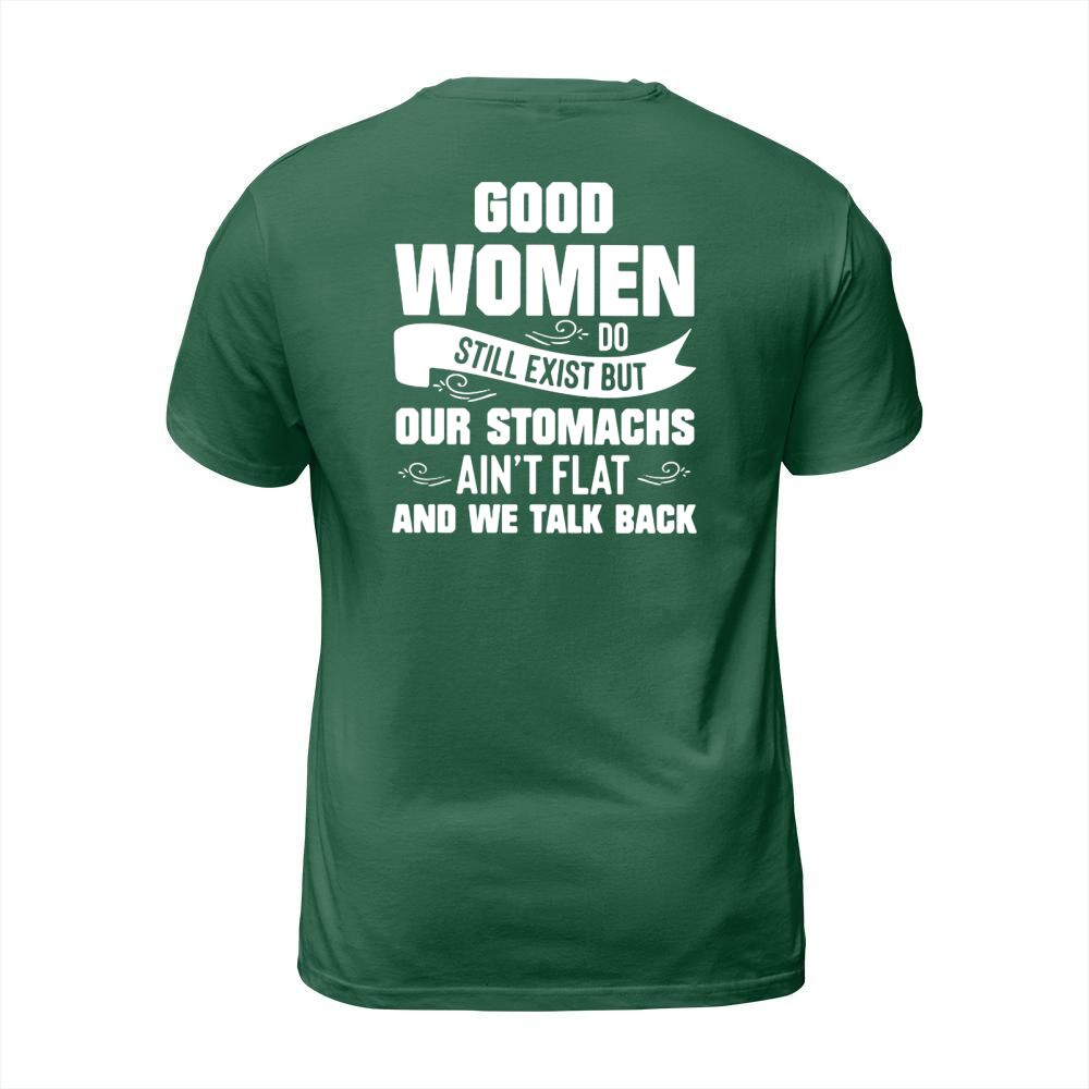 Shop Good Women Do Still Exist But Our Stomachs Aint Flat And We Talk Back T-Shirt Unisex custom made just for you. Available on many styles, sizes, and colors.