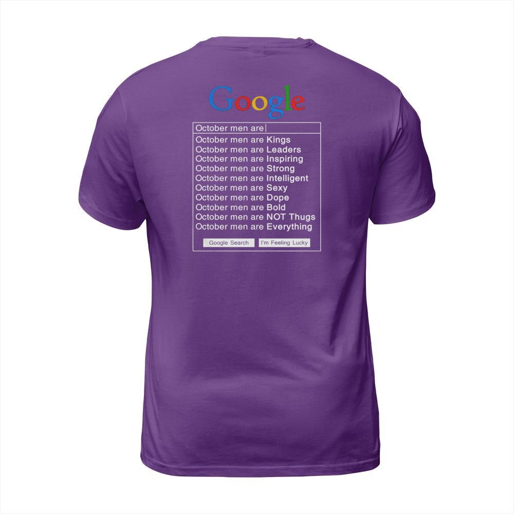 Shop Google October Men Are Shirt T-Shirt Unisex custom made just for you. Available on many styles, sizes, and colors.