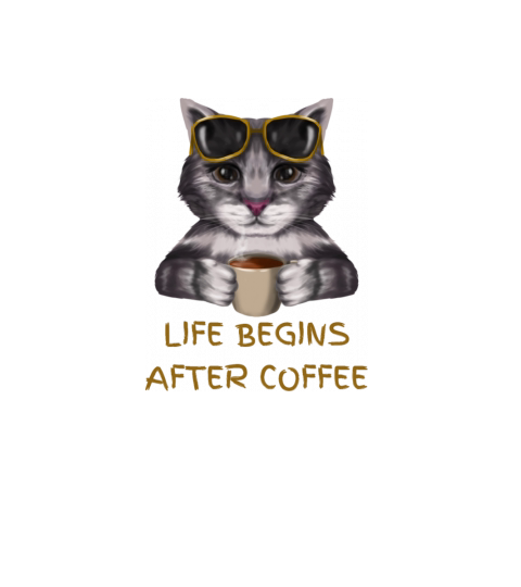 Grey Illustrated Cat Life Begins After Coffee