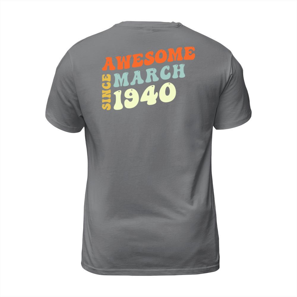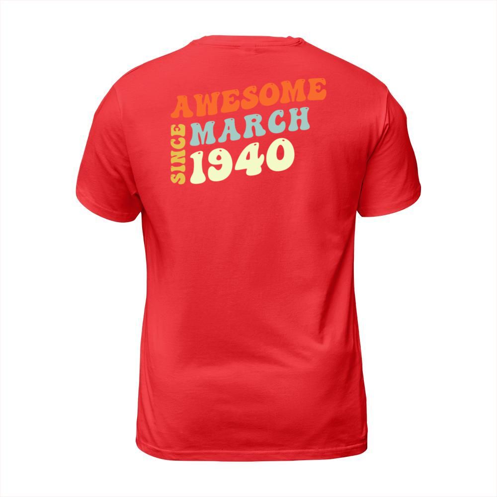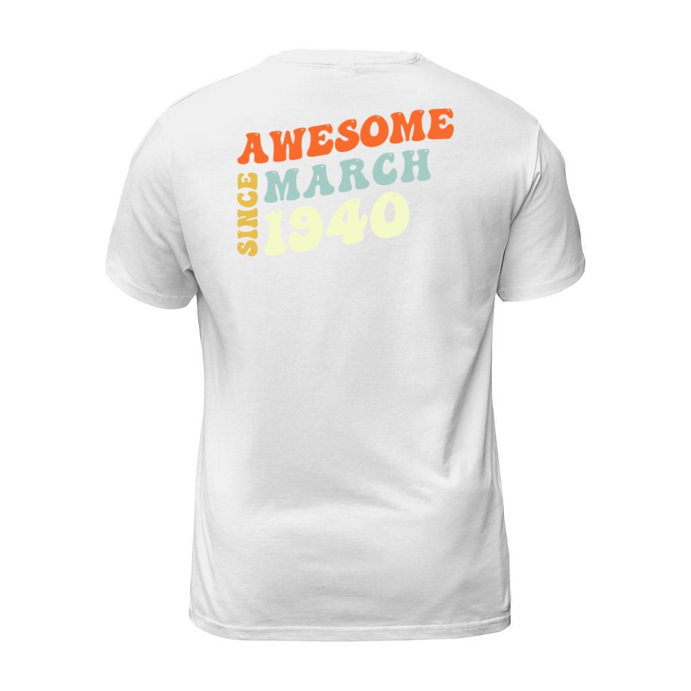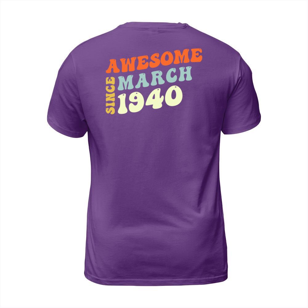 Shop Groovy 83 Years Old Awesome Since March 1940 83rd T-Shirt Unisex custom made just for you. Available on many styles, sizes, and colors.