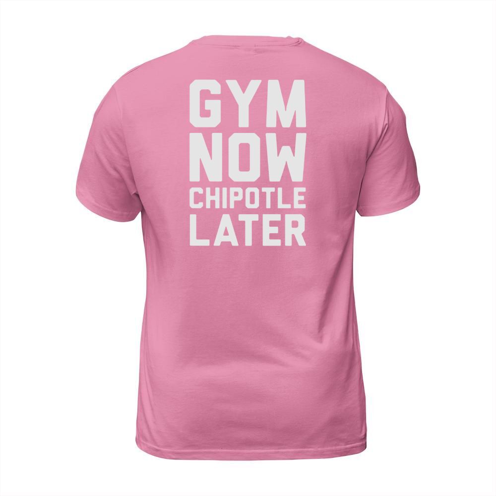 Shop GYM NOW CHIPOTLE LATER TANK TOP sports tshirt T-Shirt Unisex custom made just for you. Available on many styles, sizes, and colors.