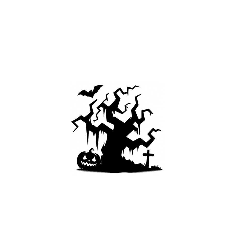 Halloween Haunted Tree With Pumpkin And Bat