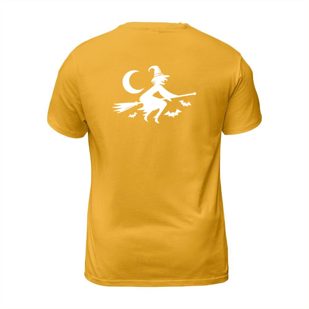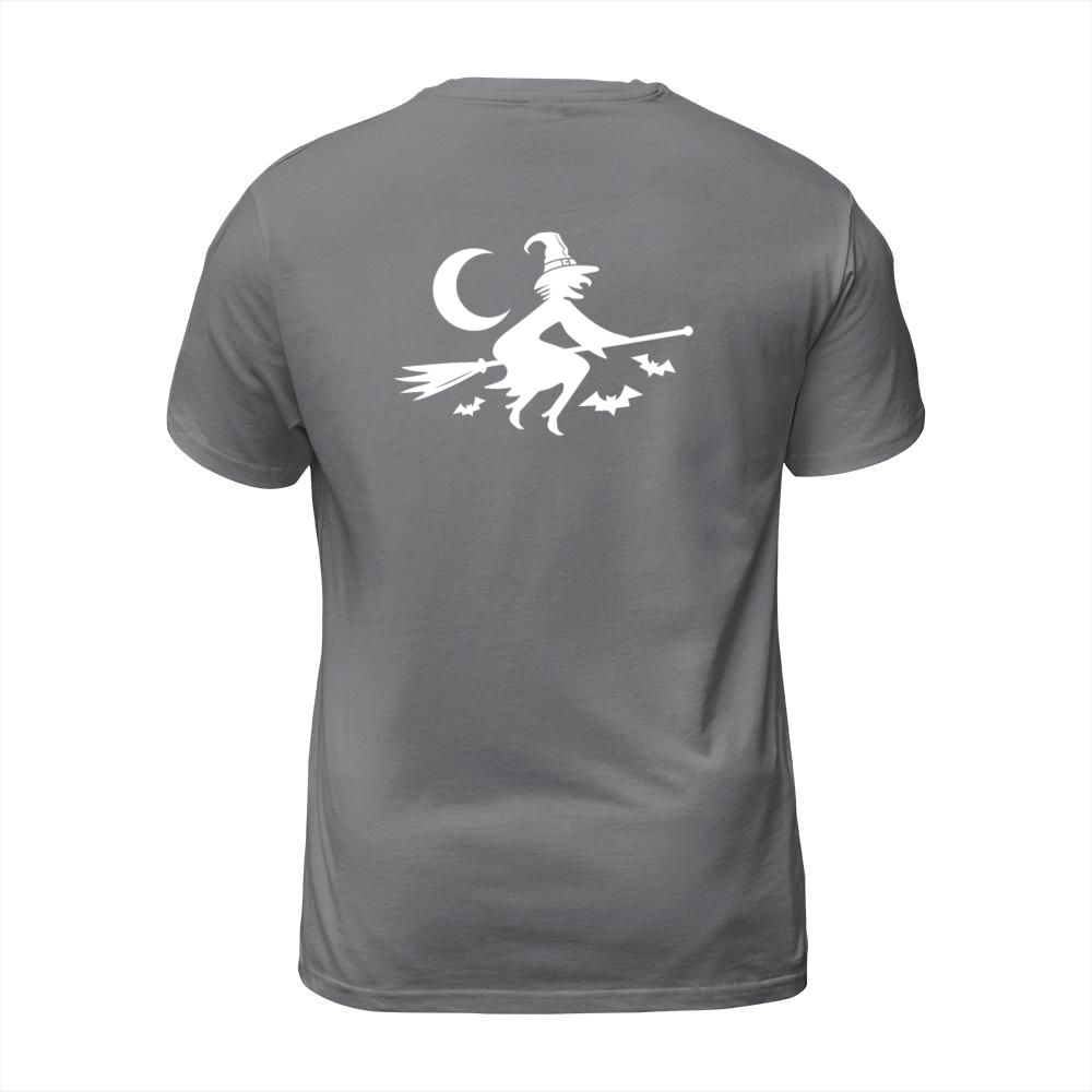 Shop halloween witch with broom Men's T-Shirt custom made just for you. Available on many styles, sizes, and colors.