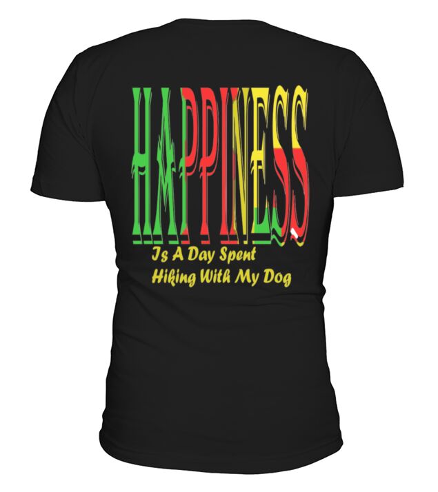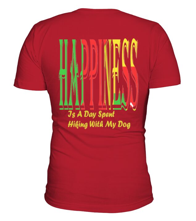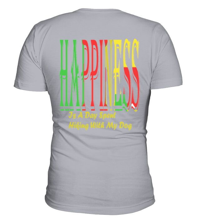 Shop Happiness Is A Day Spent Hiking With My Dog V-Neck T-shirt custom made just for you. Available on many styles, sizes, and colors.