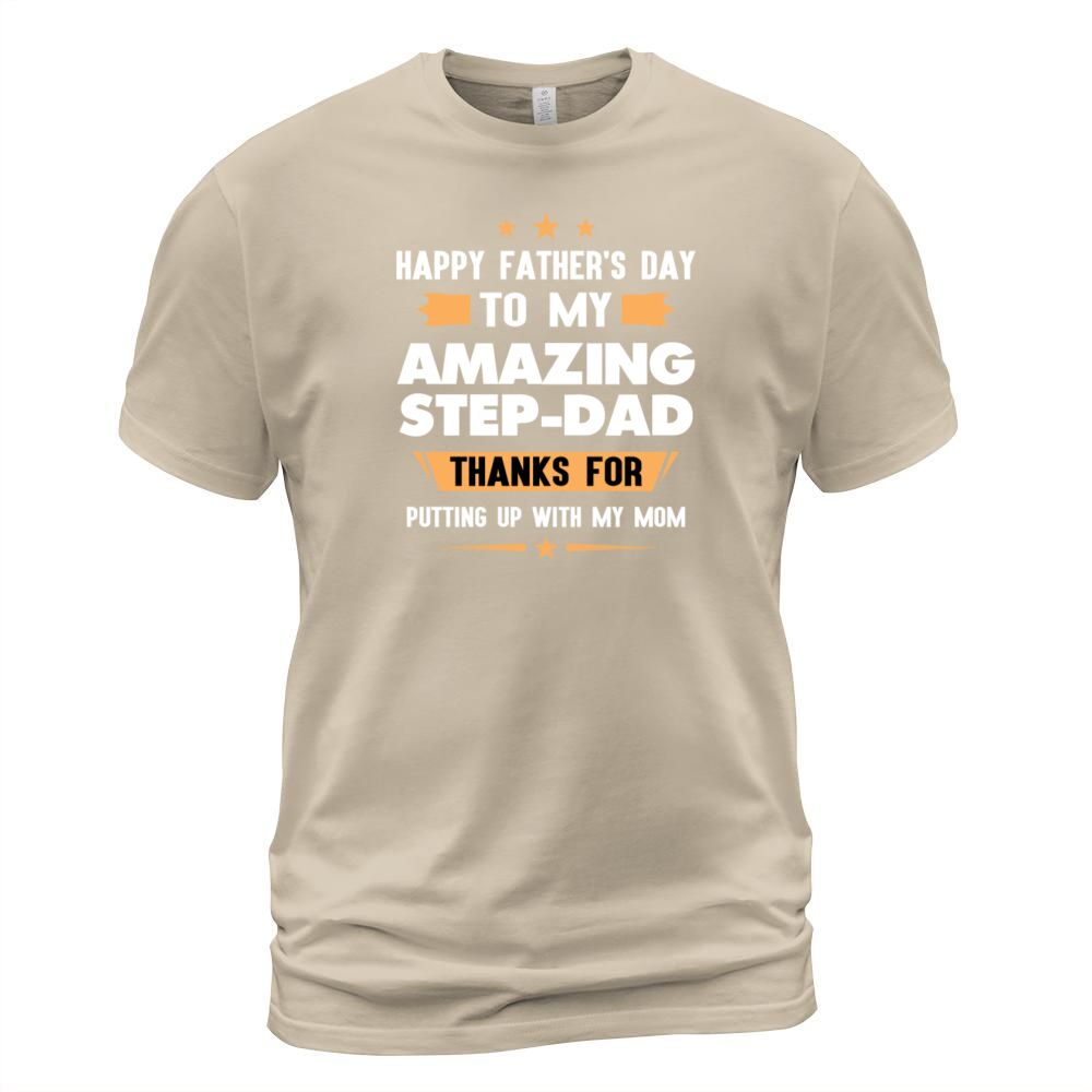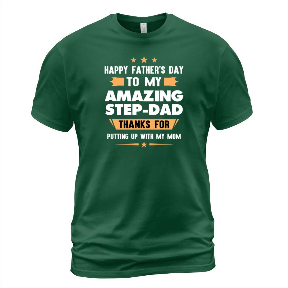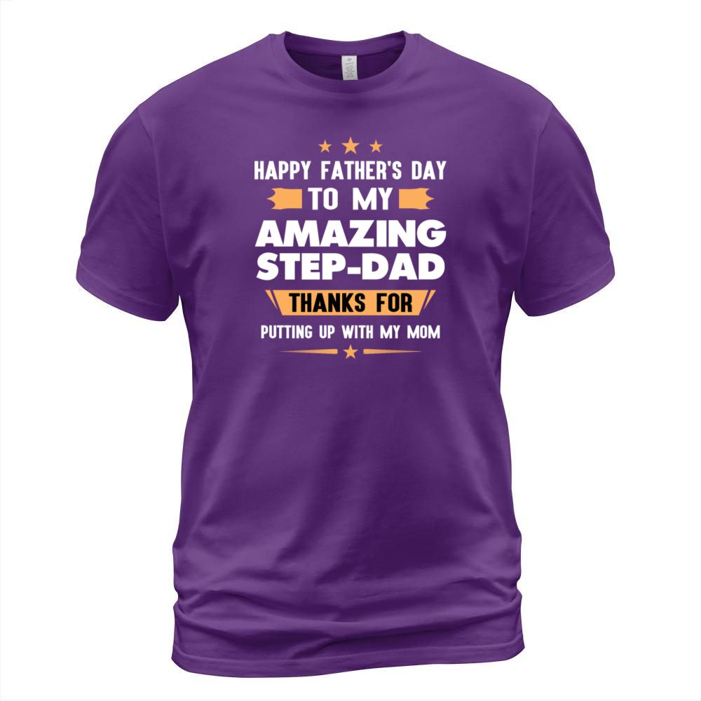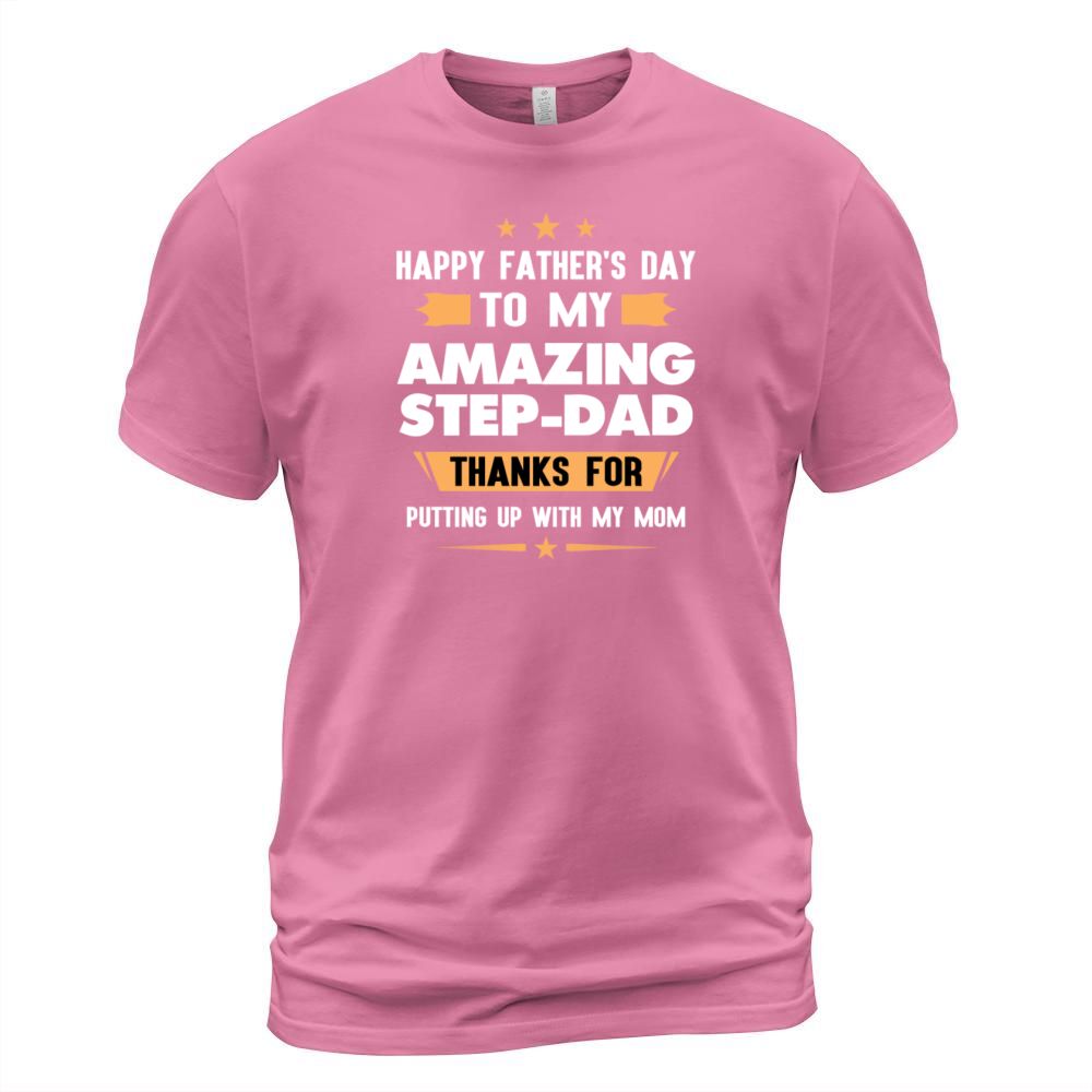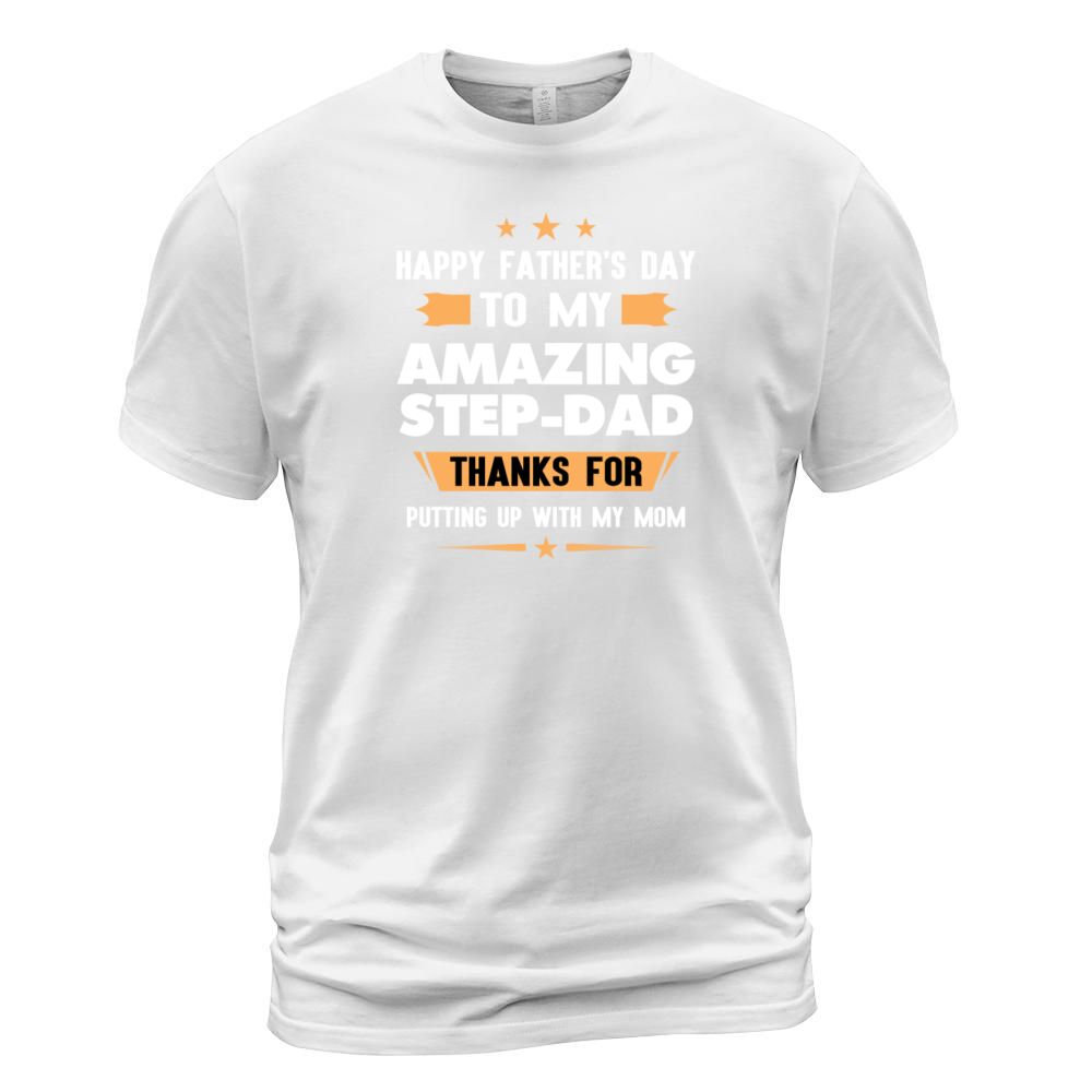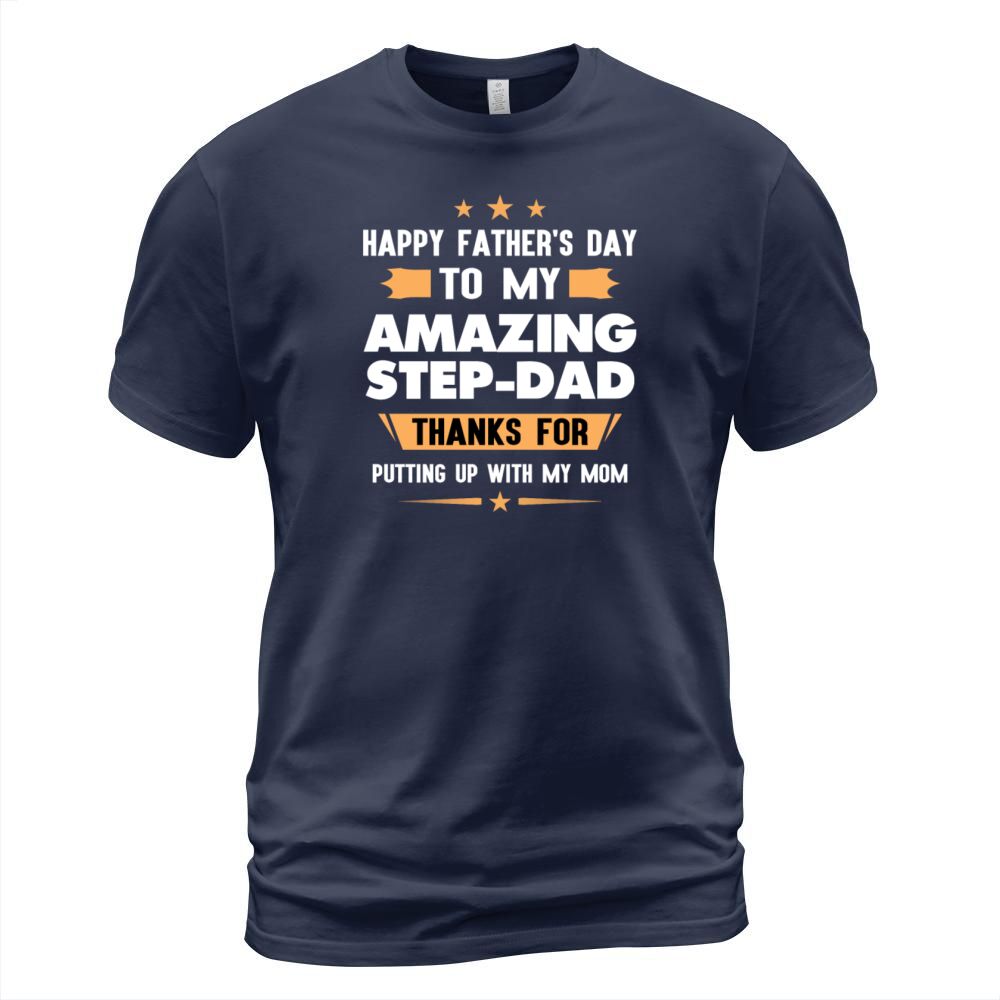 Shop Happy Fathers Day Gift To My Amazing Step Dad Men's T-Shirt custom made just for you. Available on many styles, sizes, and colors.