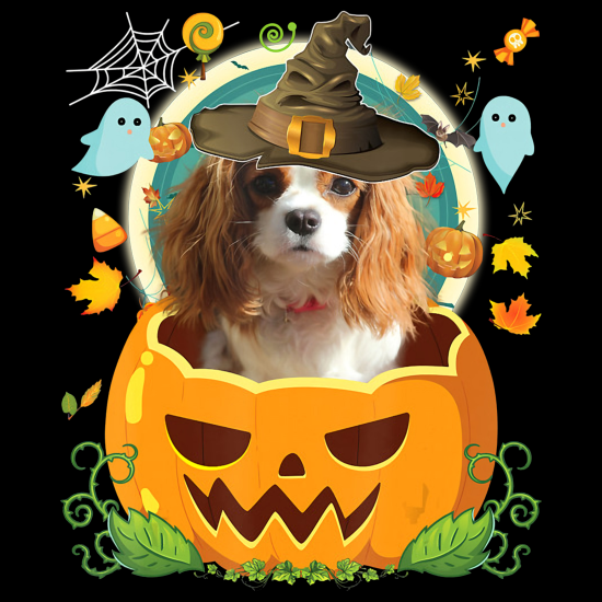 Happy Halloween Pumpkin Cavalier King Charles Spaniel Dog - Pillow