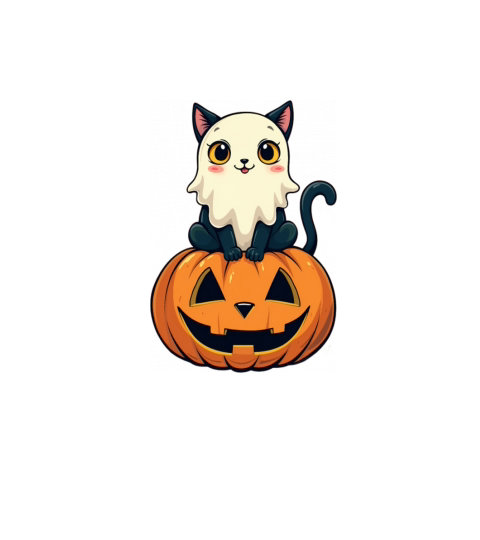 Haunted Halloween Cat and Pumpkin - Spooky Ghost