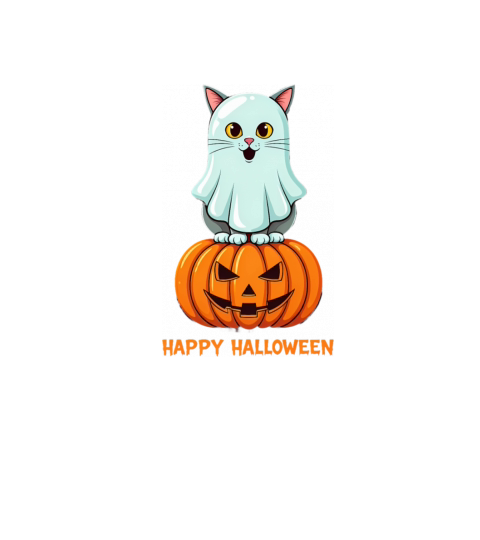 Haunted Halloween Cat and Pumpkin - Spooky Ghost