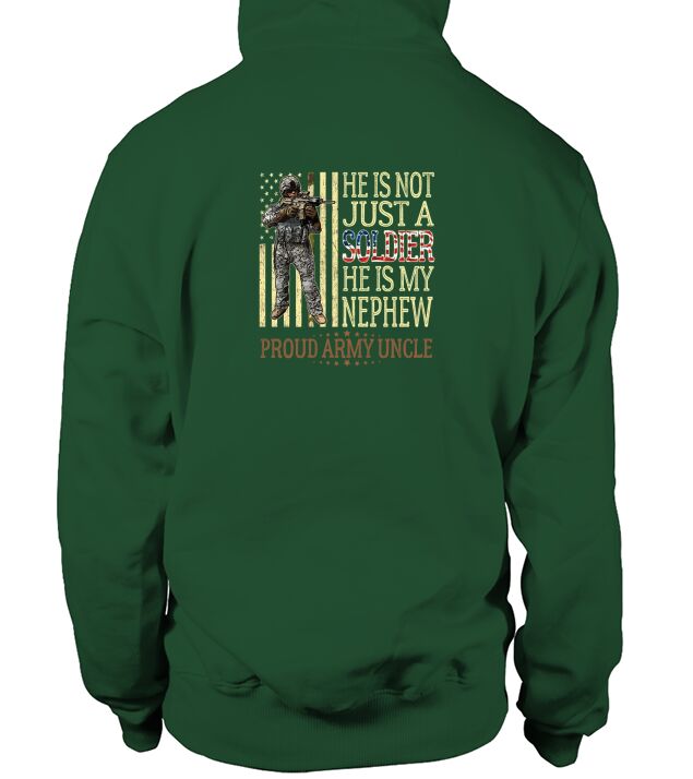 Shop He Is Not Just A Soldier He Is My Nephew Proud Army Uncle Hoodie Unisex custom made just for you. Available on many styles, sizes, and colors.