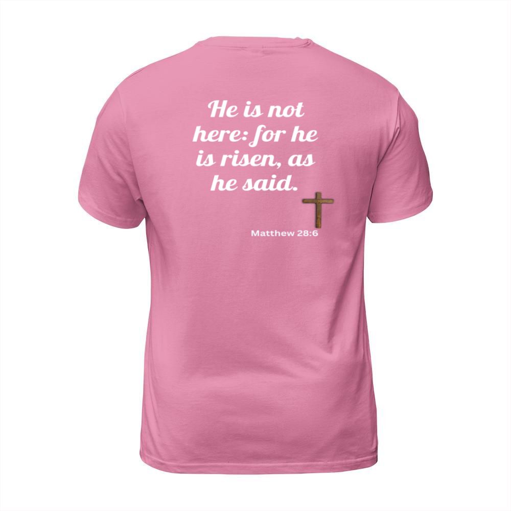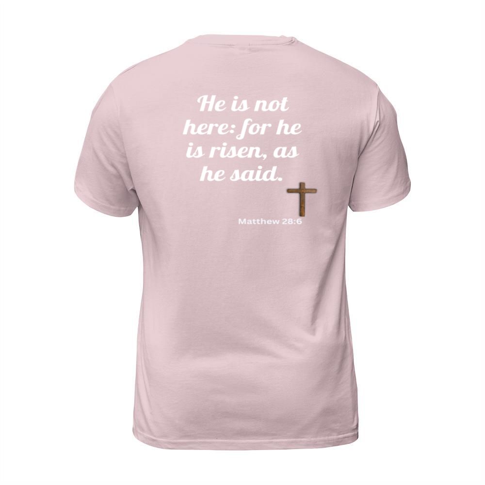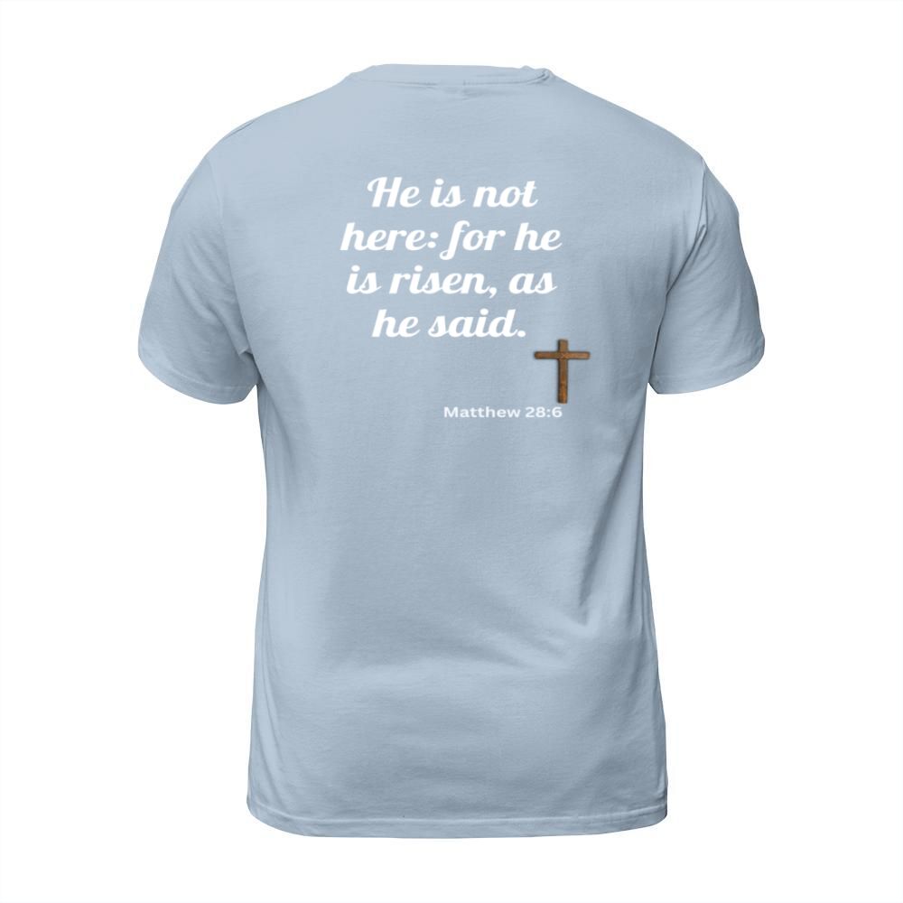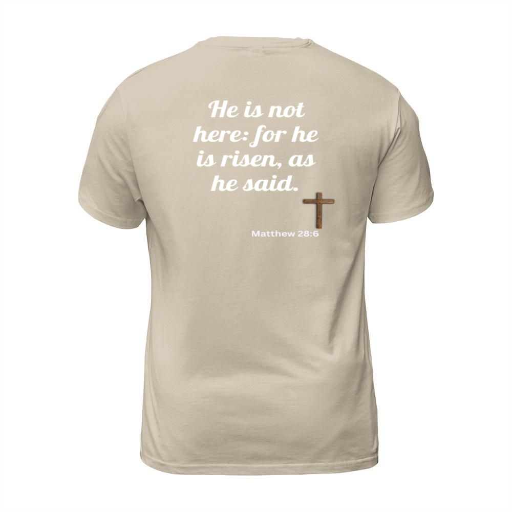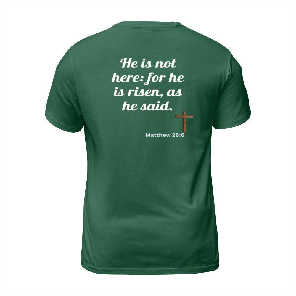 Shop He is risen bible verse T-Shirt Unisex custom made just for you. Available on many styles, sizes, and colors.