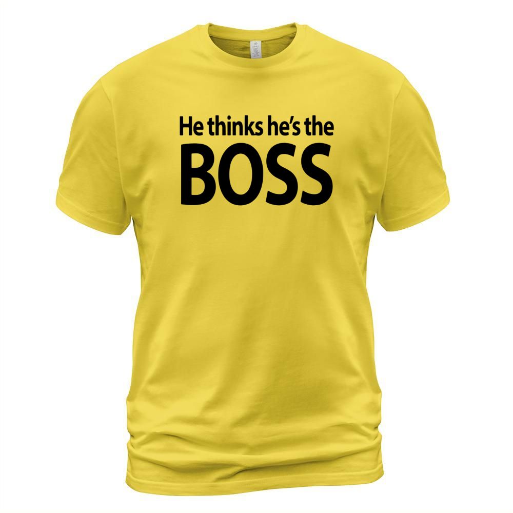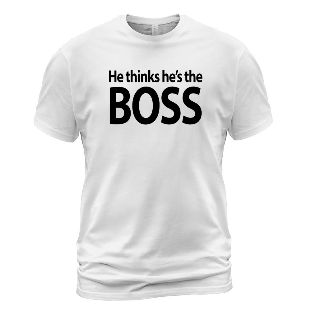 Shop He thinks he’s the boss shirt T-Shirt Unisex custom made just for you. Available on many styles, sizes, and colors.