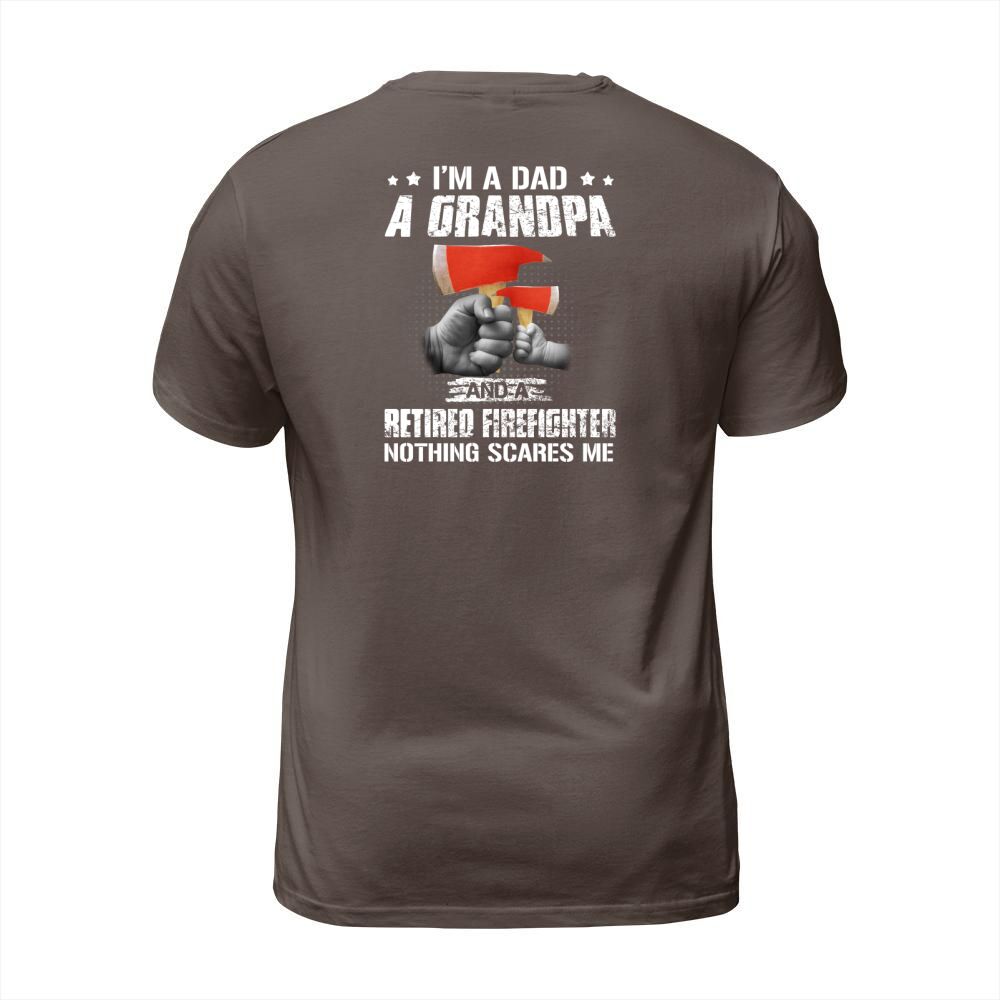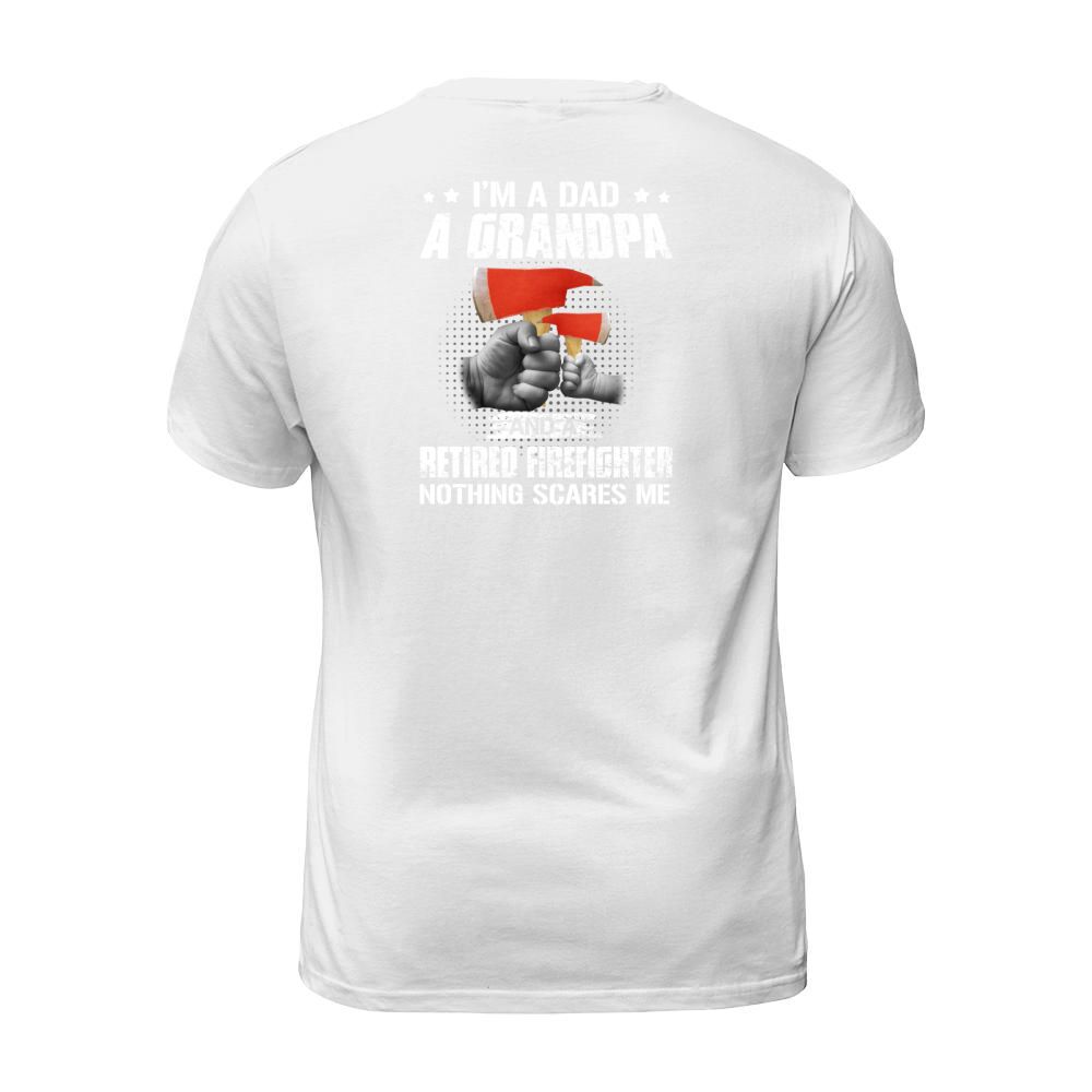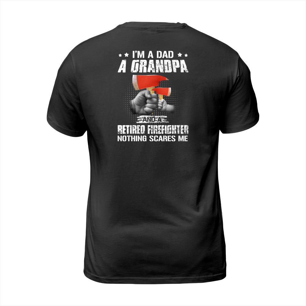 Shop I am a dad a grandpa and a retired firefighter nothing scares me T-Shirt Unisex custom made just for you. Available on many styles, sizes, and colors.