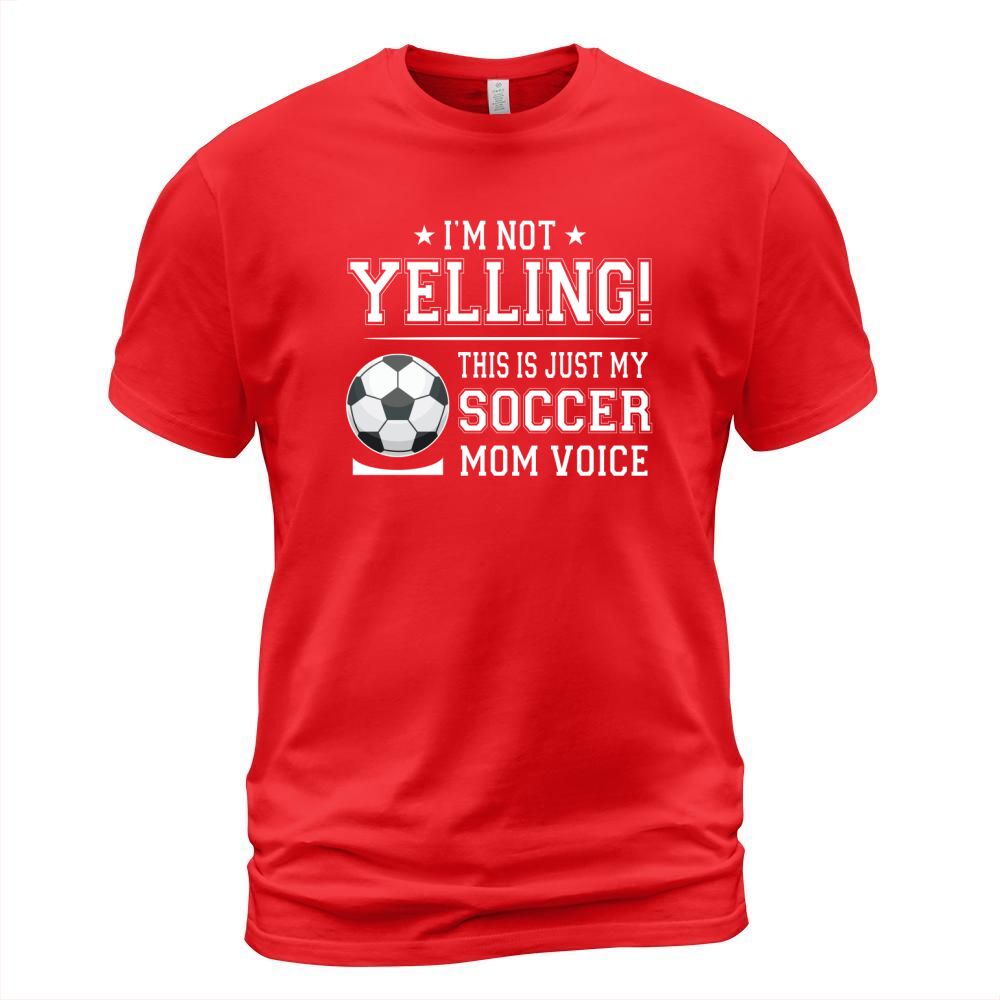 Shop I Am Not Yelling This Is Just My Soccer Mom Voice Cheer Funny Gift For Mother T-Shirt Unisex custom made just for you. Available on many styles, sizes, and colors.