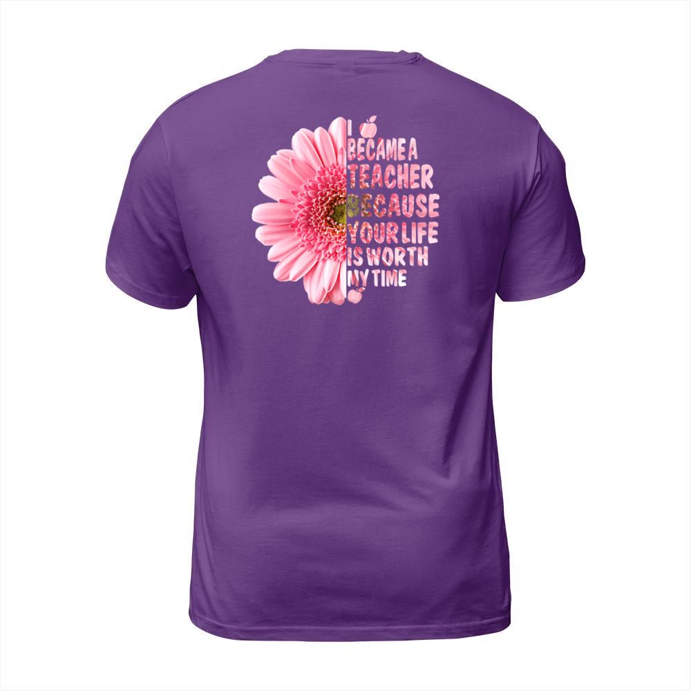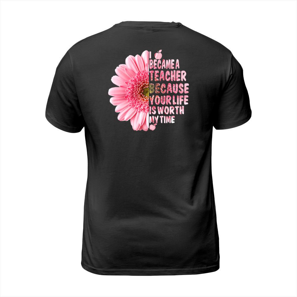 Shop I Became A Teacher Because Your Life Is Worth Time T-Shirt Unisex custom made just for you. Available on many styles, sizes, and colors.