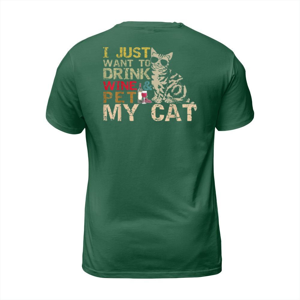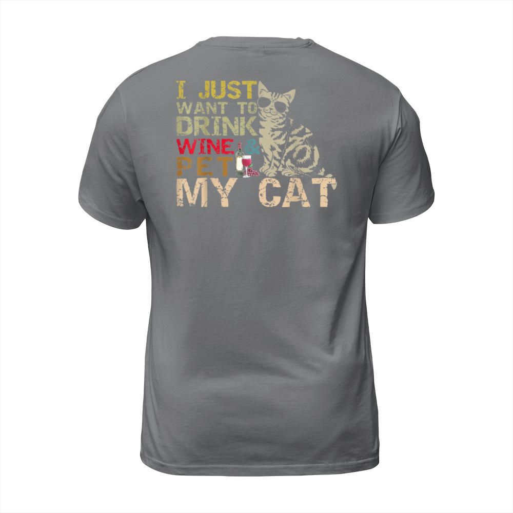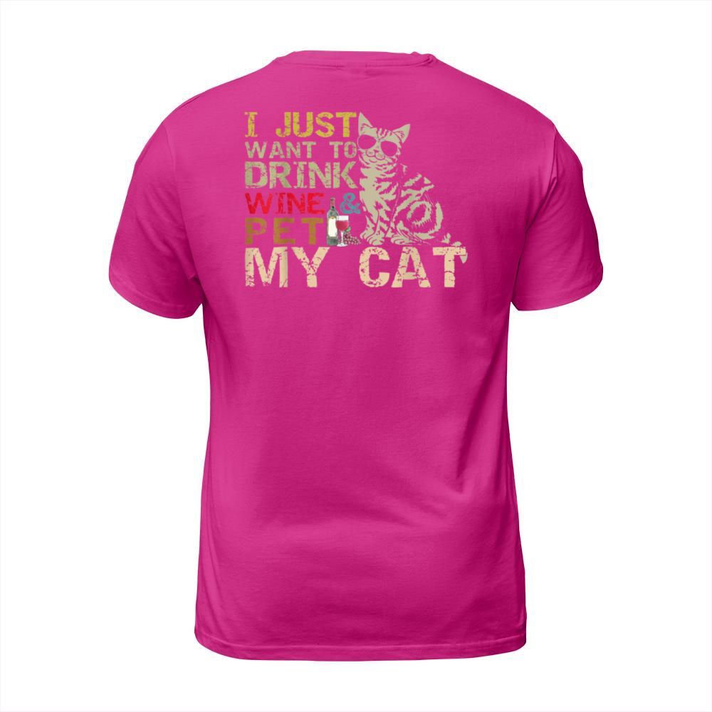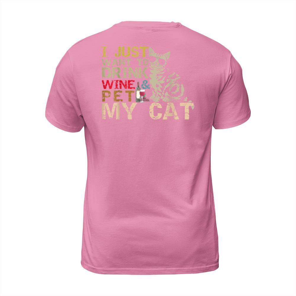 Shop I Just Want To Drink Wine Pet My Cat Funny Lover T-Shirt Unisex custom made just for you. Available on many styles, sizes, and colors.