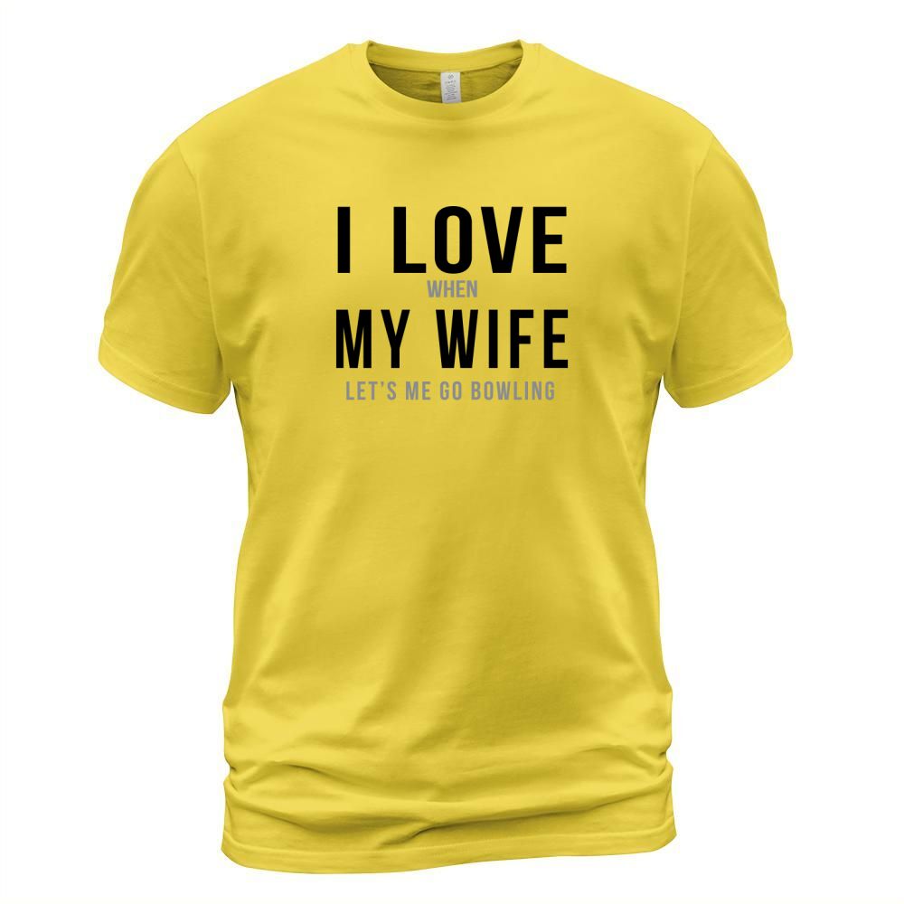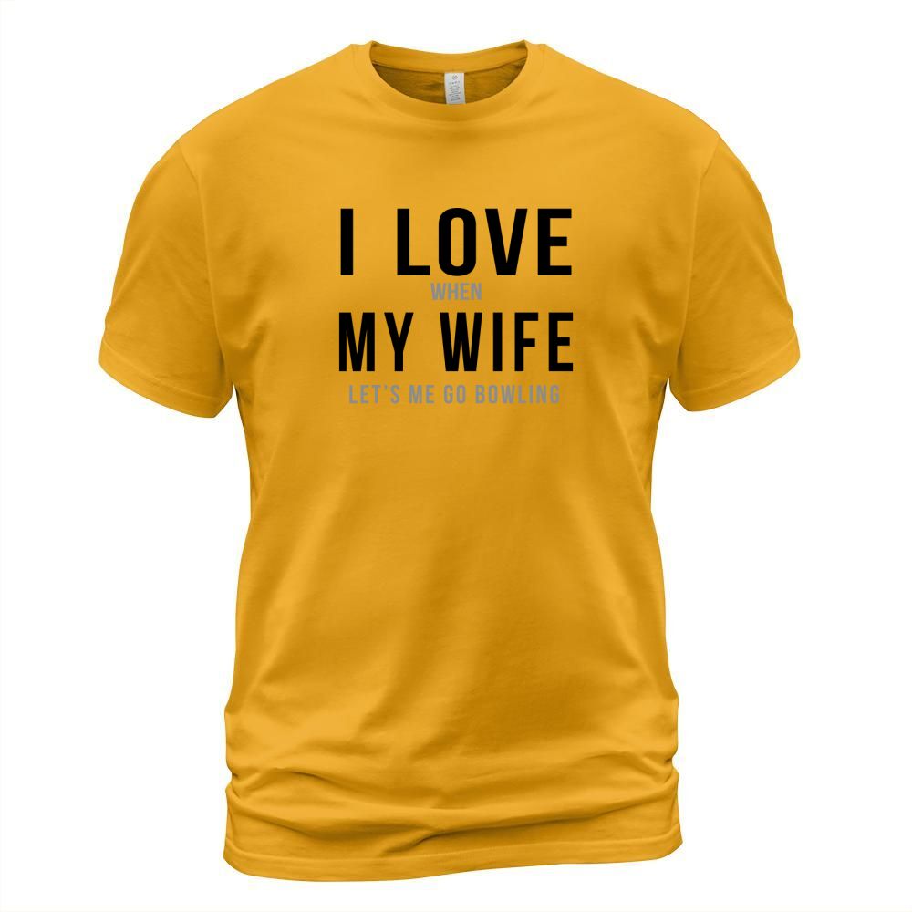 Shop I love when my wife lets me go bowling TShirts Mens Premium TShirt T-Shirt Unisex custom made just for you. Available on many styles, sizes, and colors.