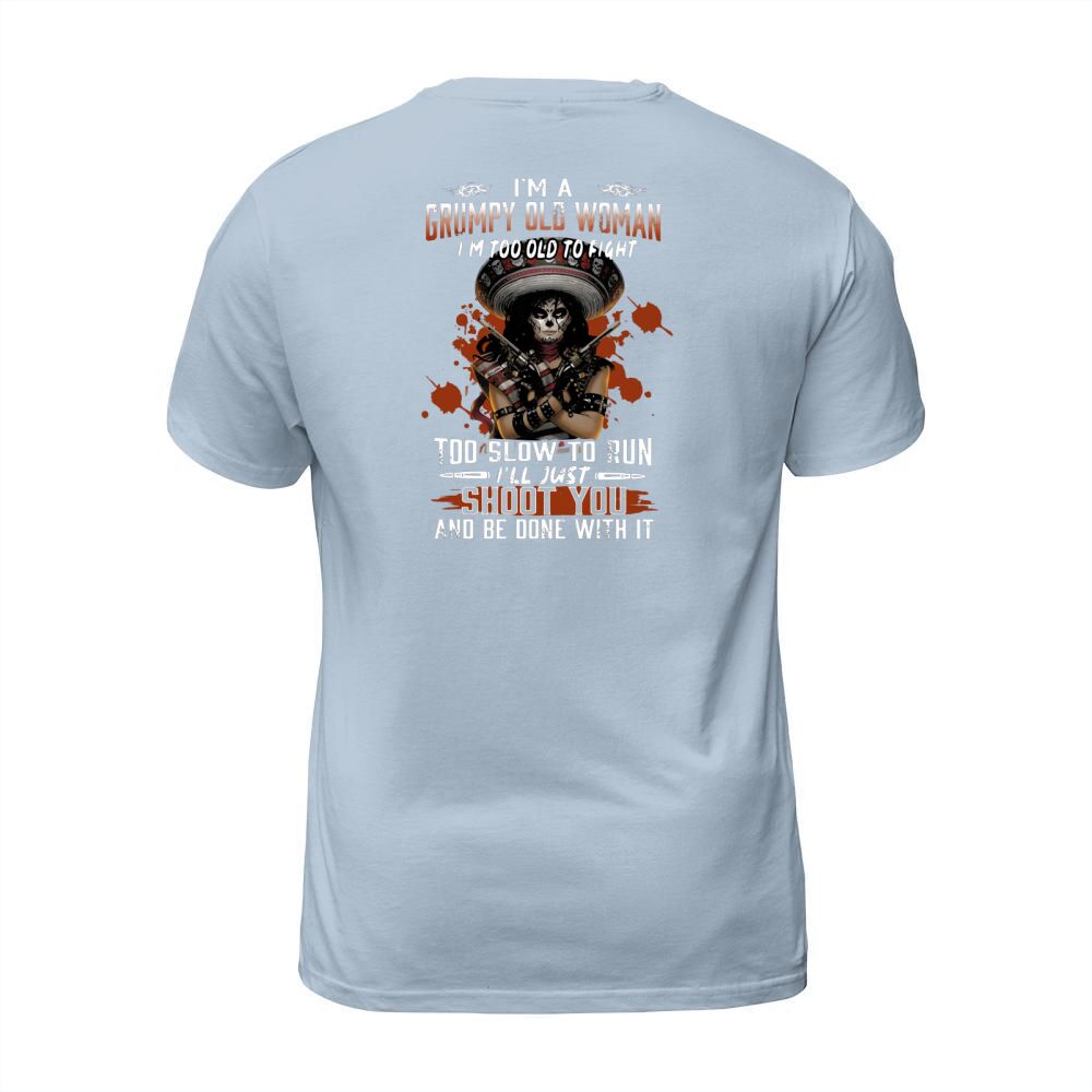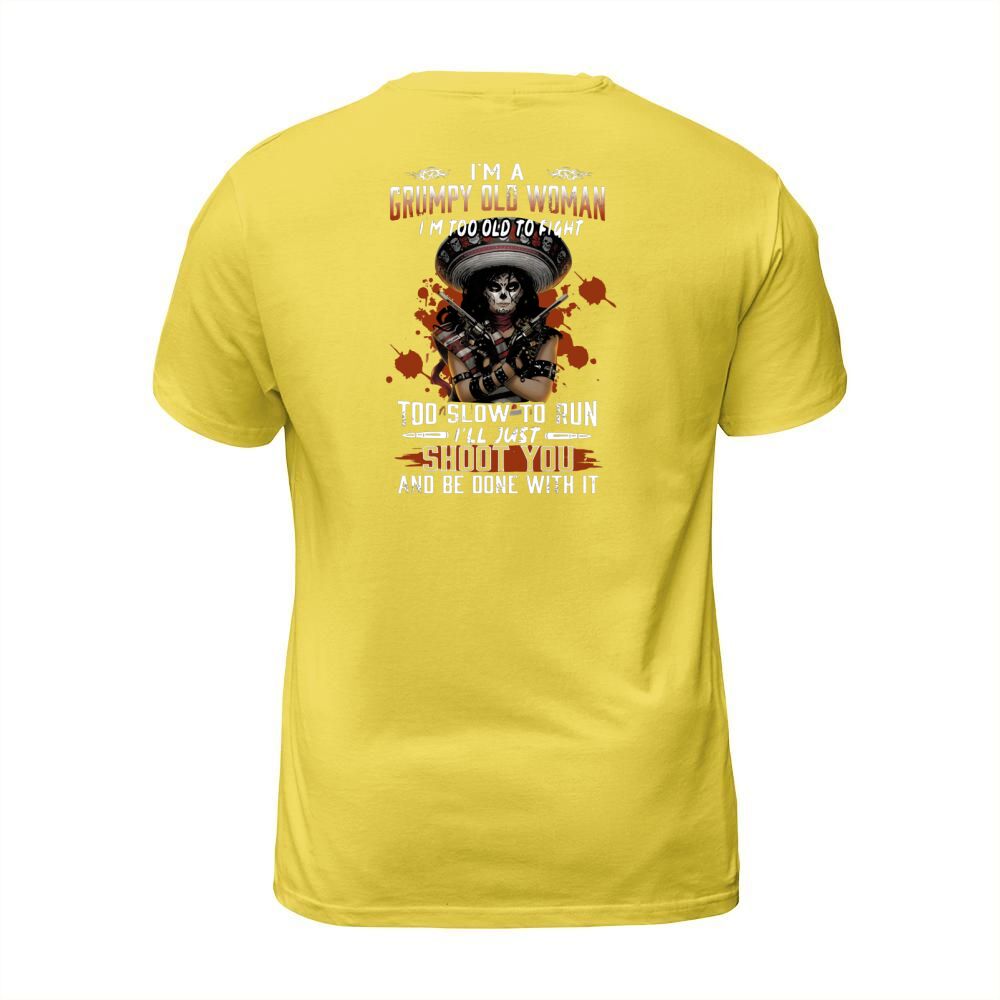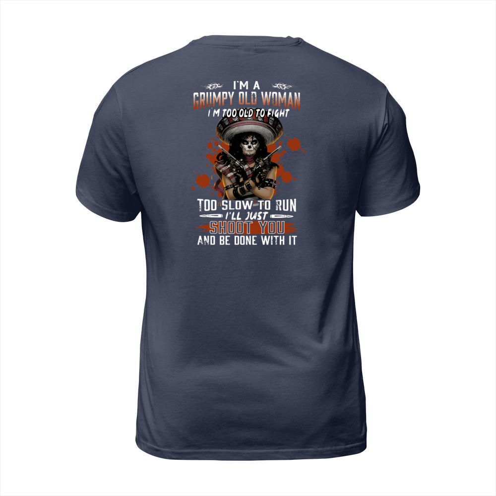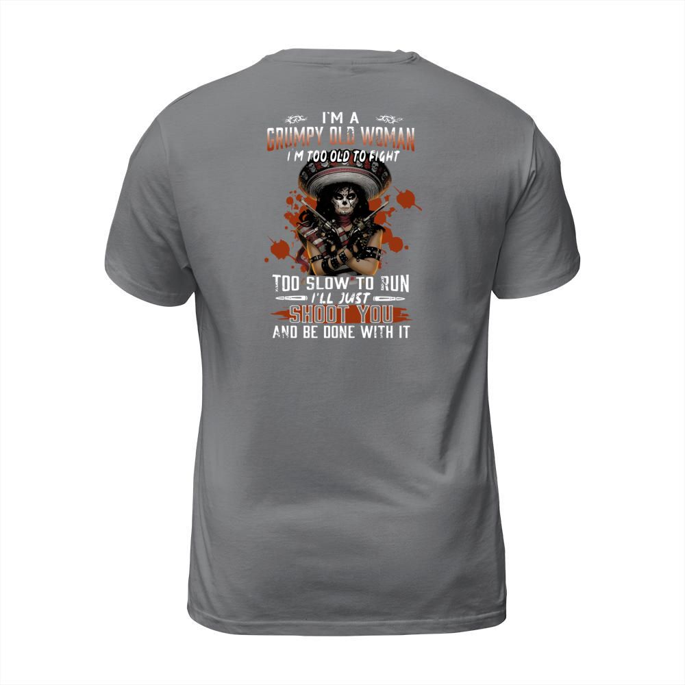Shop I’m A Grumpy Old Woman I’m Too Old To Fight Too Slow To Run I’ll Just Shoot You And Be Done With It T-Shirt Unisex custom made just for you. Available on many styles, sizes, and colors.
