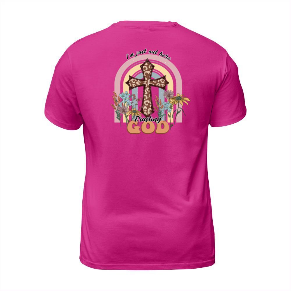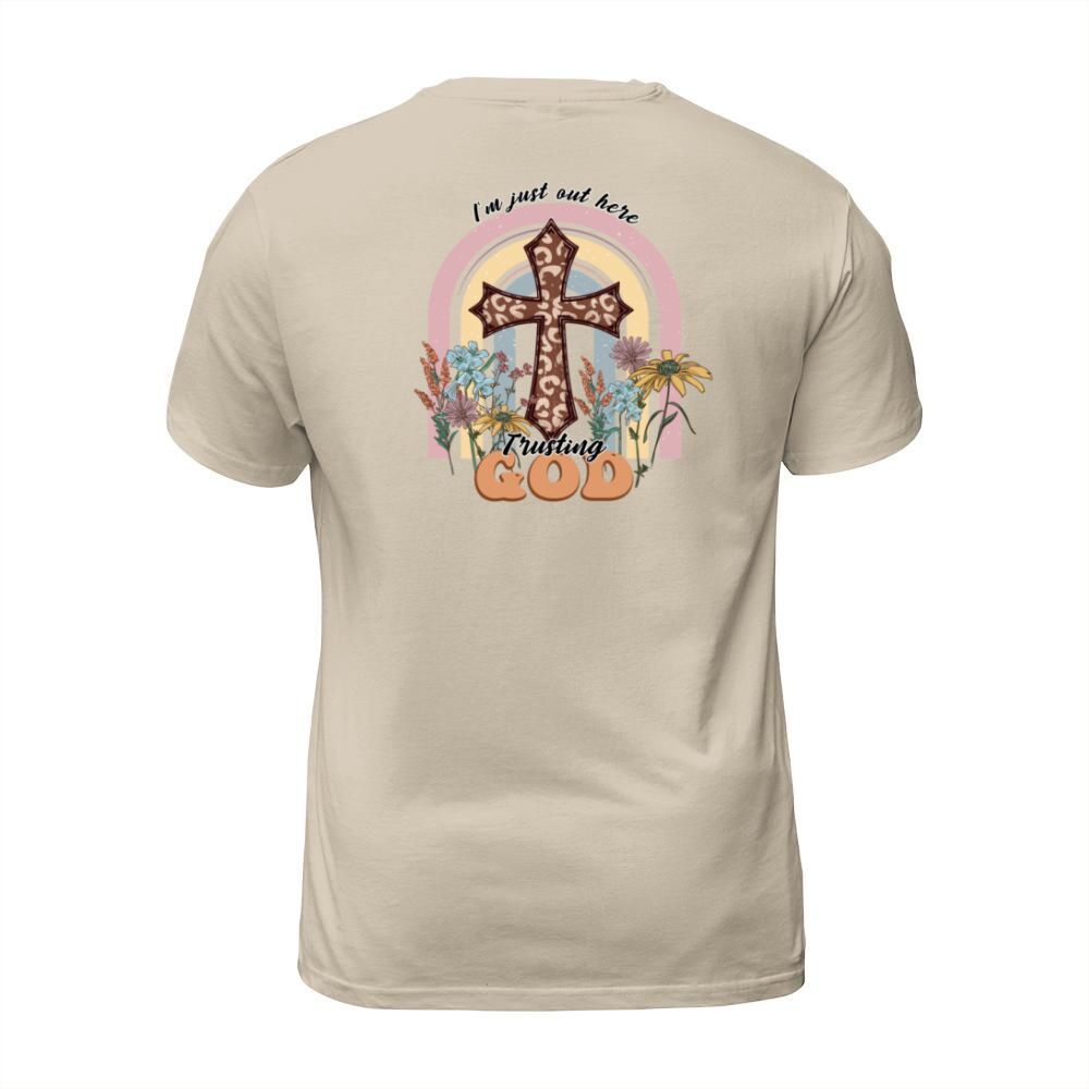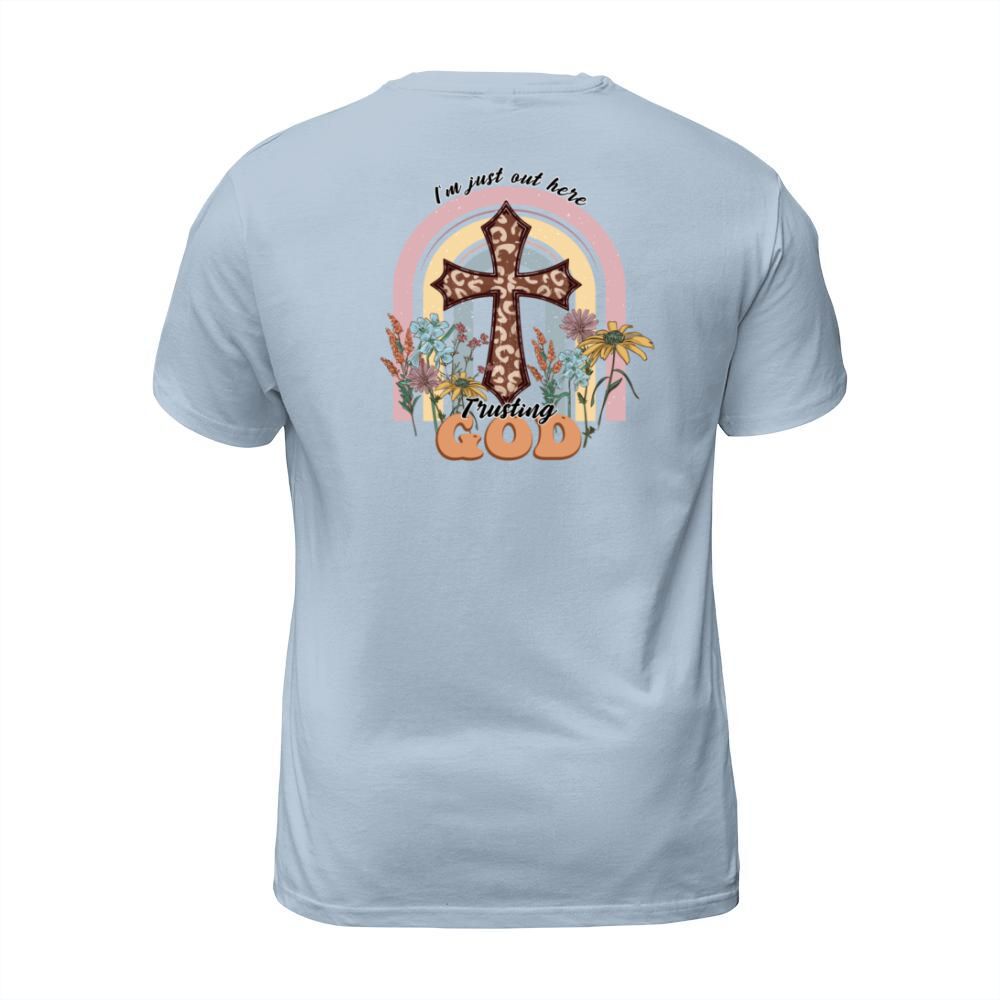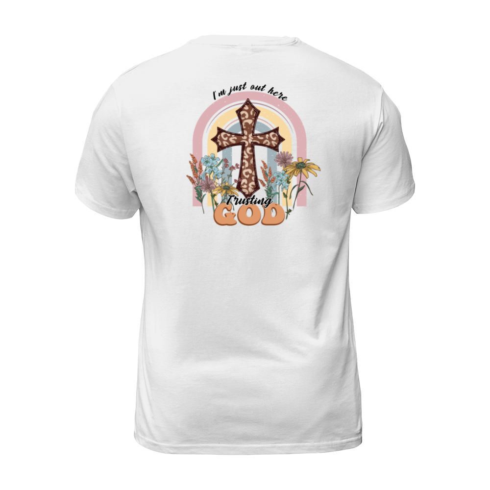 Shop I m just out here trusting God T-Shirt Unisex custom made just for you. Available on many styles, sizes, and colors.