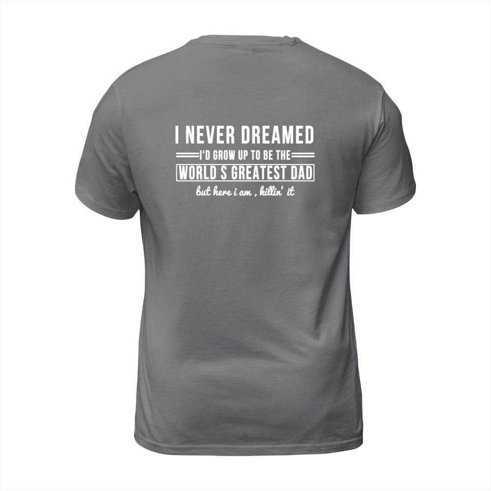 Shop I Never Dreamed Id Grow Up To Be The Worlds Greatest Dad but here i am killin T-Shirt Unisex custom made just for you. Available on many styles, sizes, and colors.