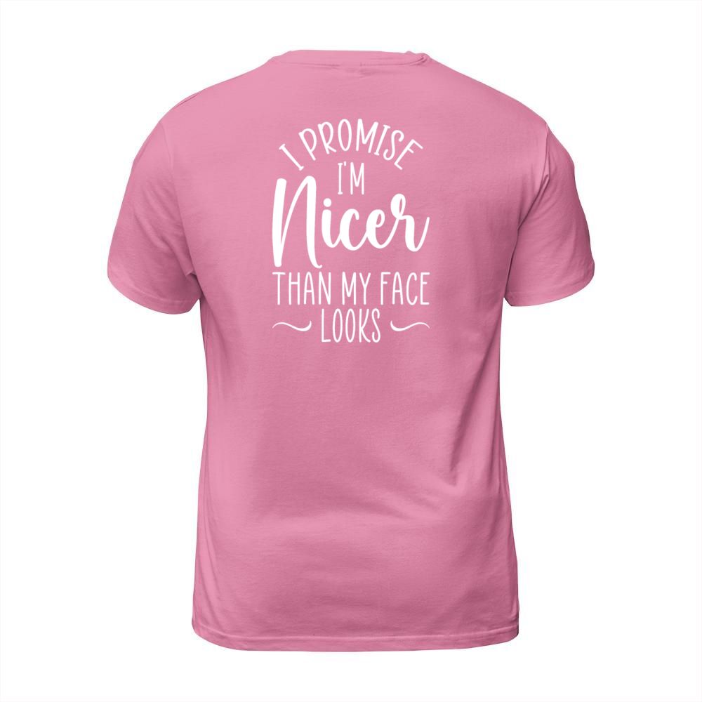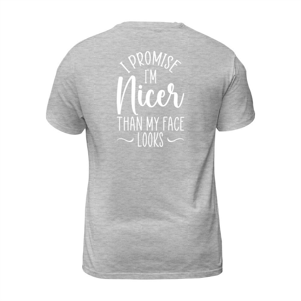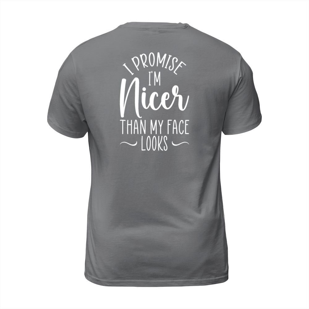Shop i promise i m nicer than my face looks - humorous T-Shirt Unisex custom made just for you. Available on many styles, sizes, and colors.