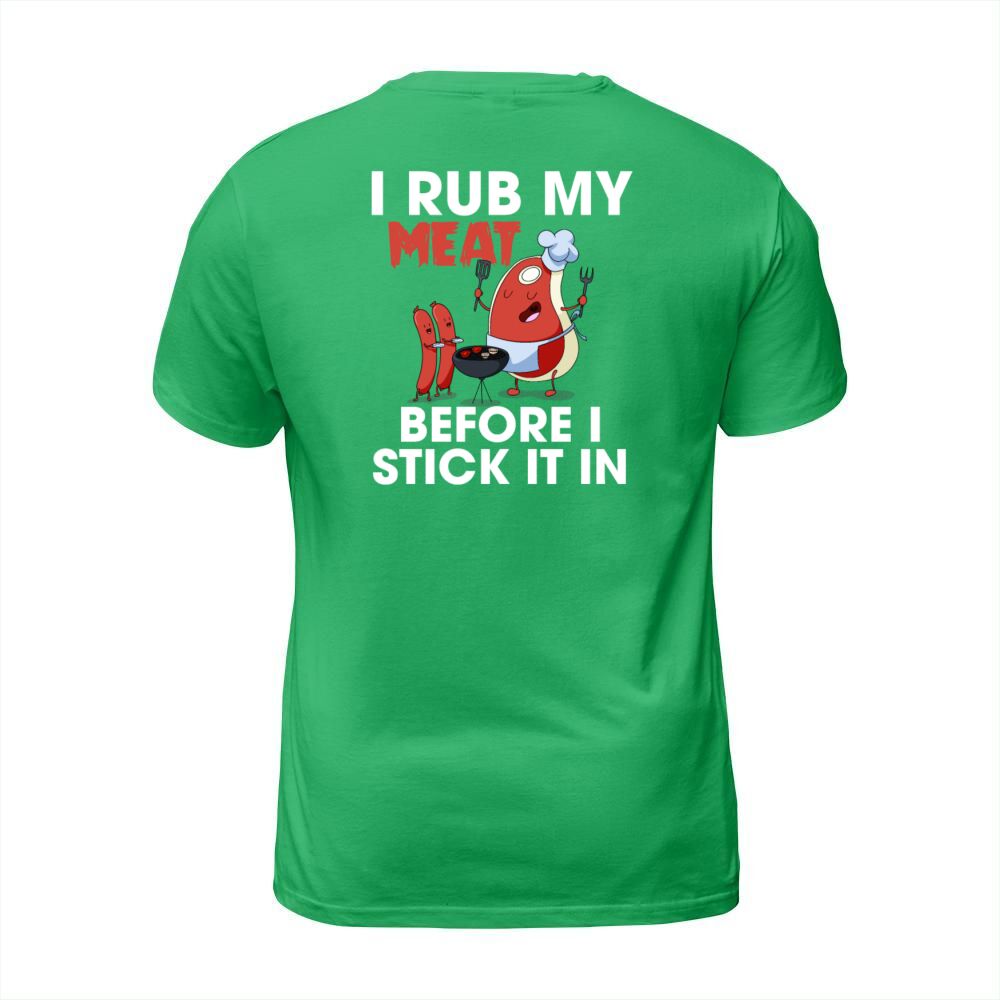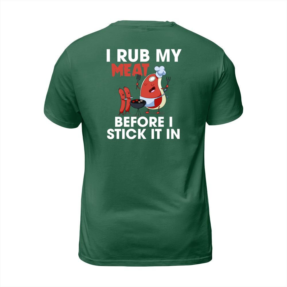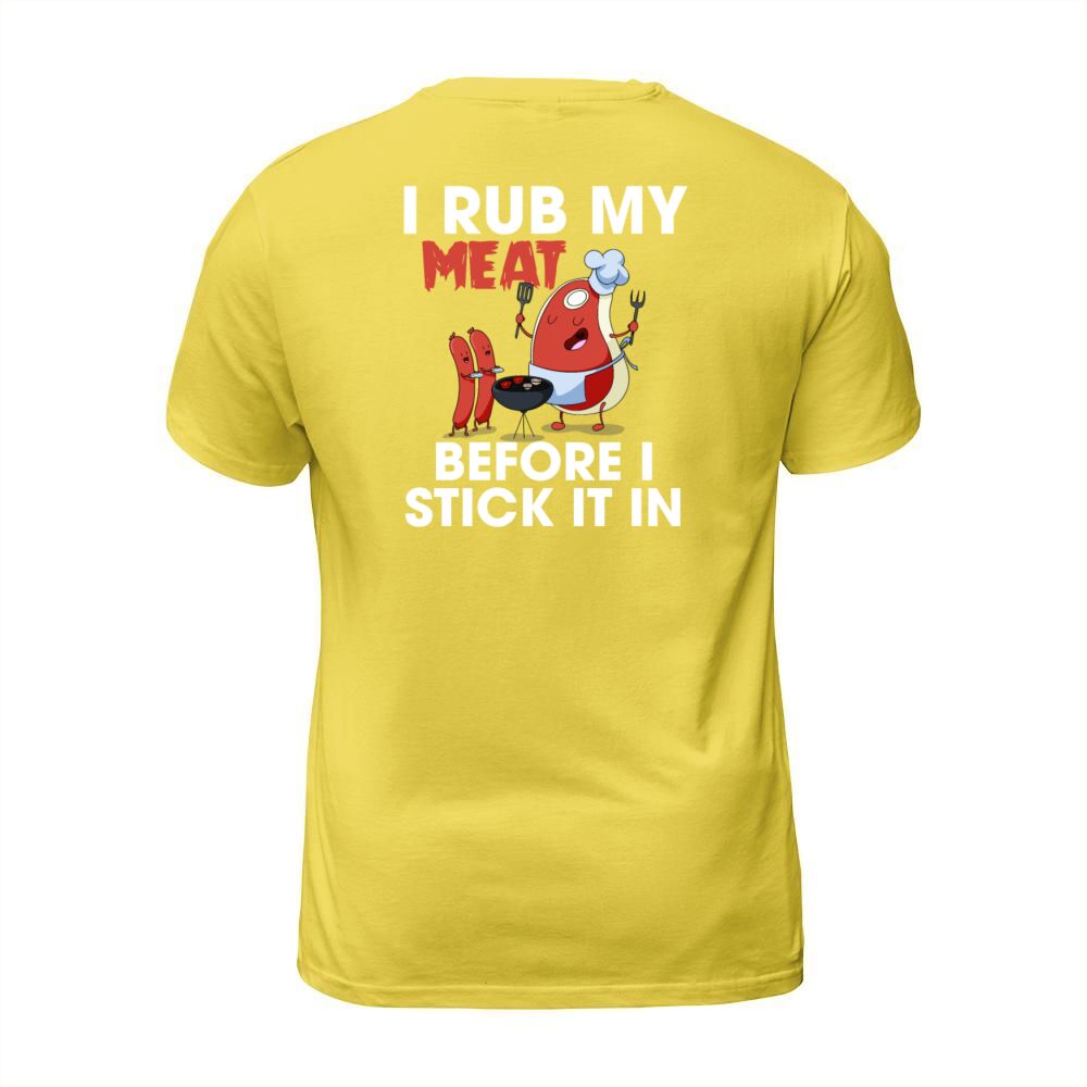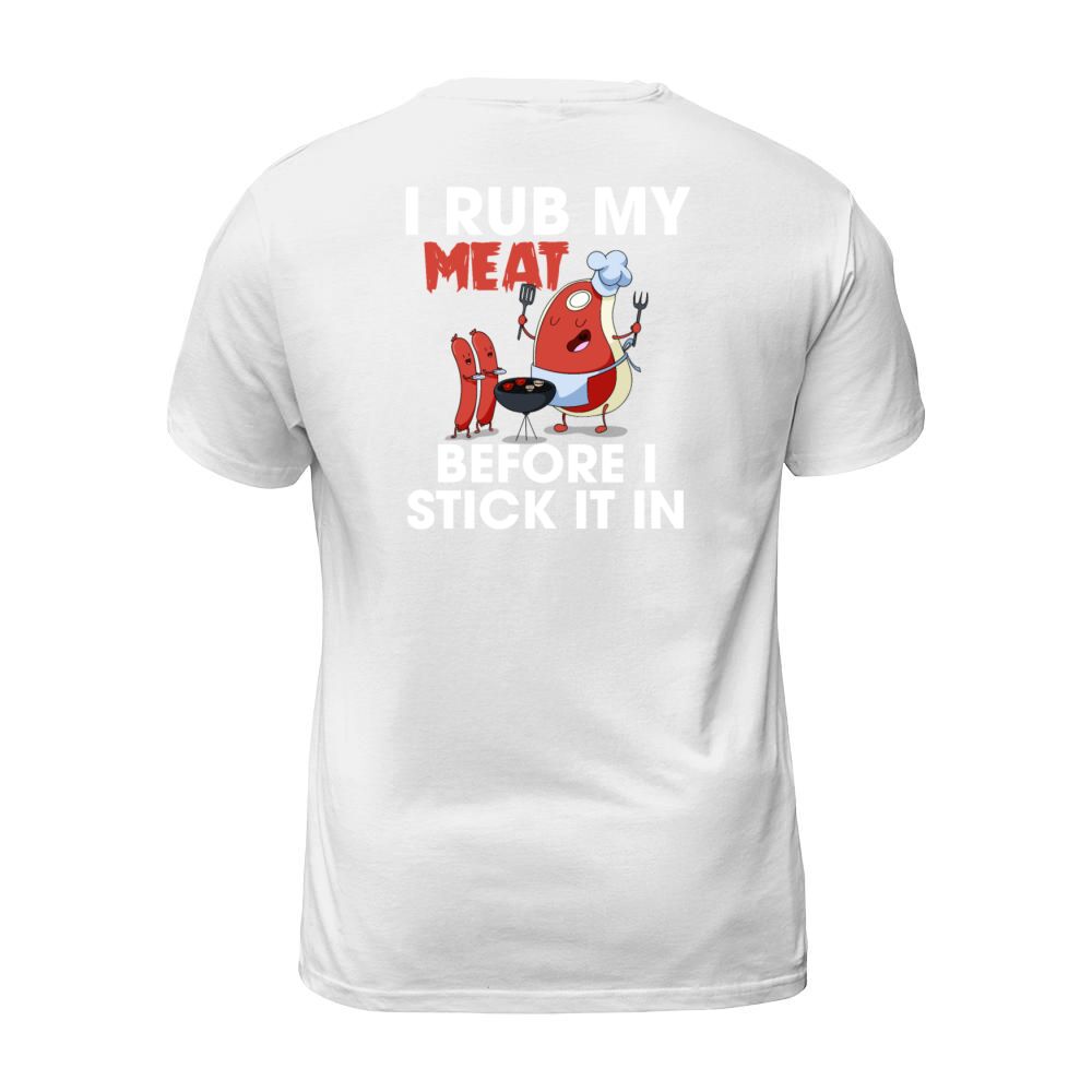 Shop I Rub My Meat Before I Stick It In Funny Grilling T-Shirt Unisex custom made just for you. Available on many styles, sizes, and colors.