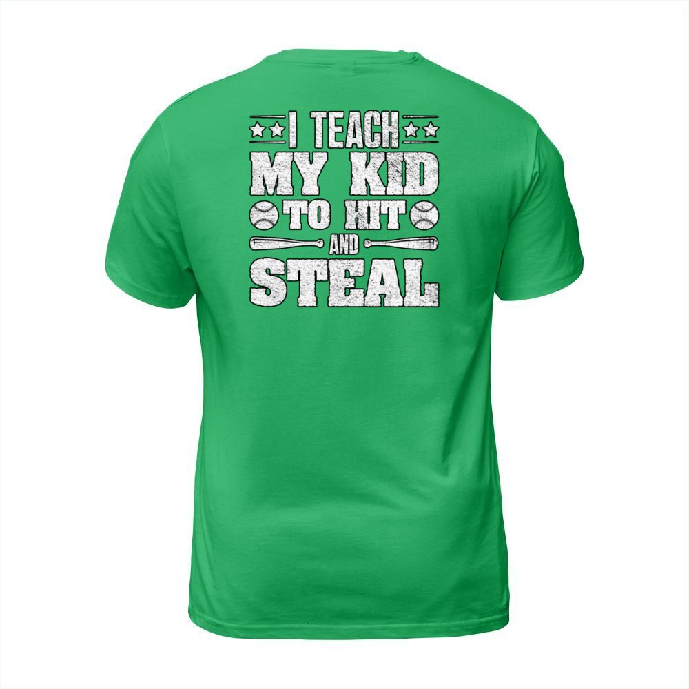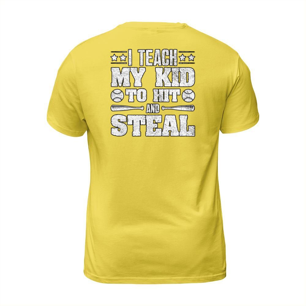 Shop I Teach My Kid To Hit And Steal Baseball Parent T-Shirt Unisex custom made just for you. Available on many styles, sizes, and colors.