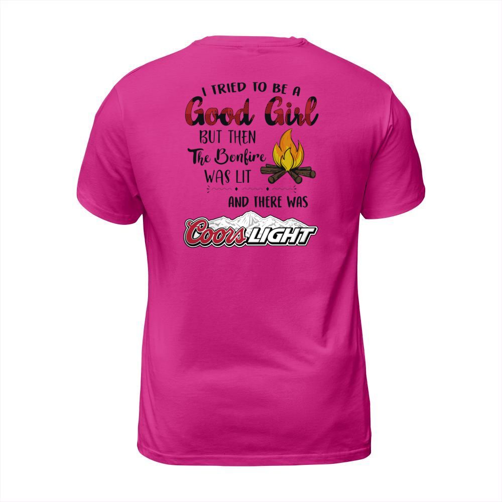 Shop I tried to be a good girl but the the bonfire was lit and there was coors light T-Shirt Unisex custom made just for you. Available on many styles, sizes, and colors.