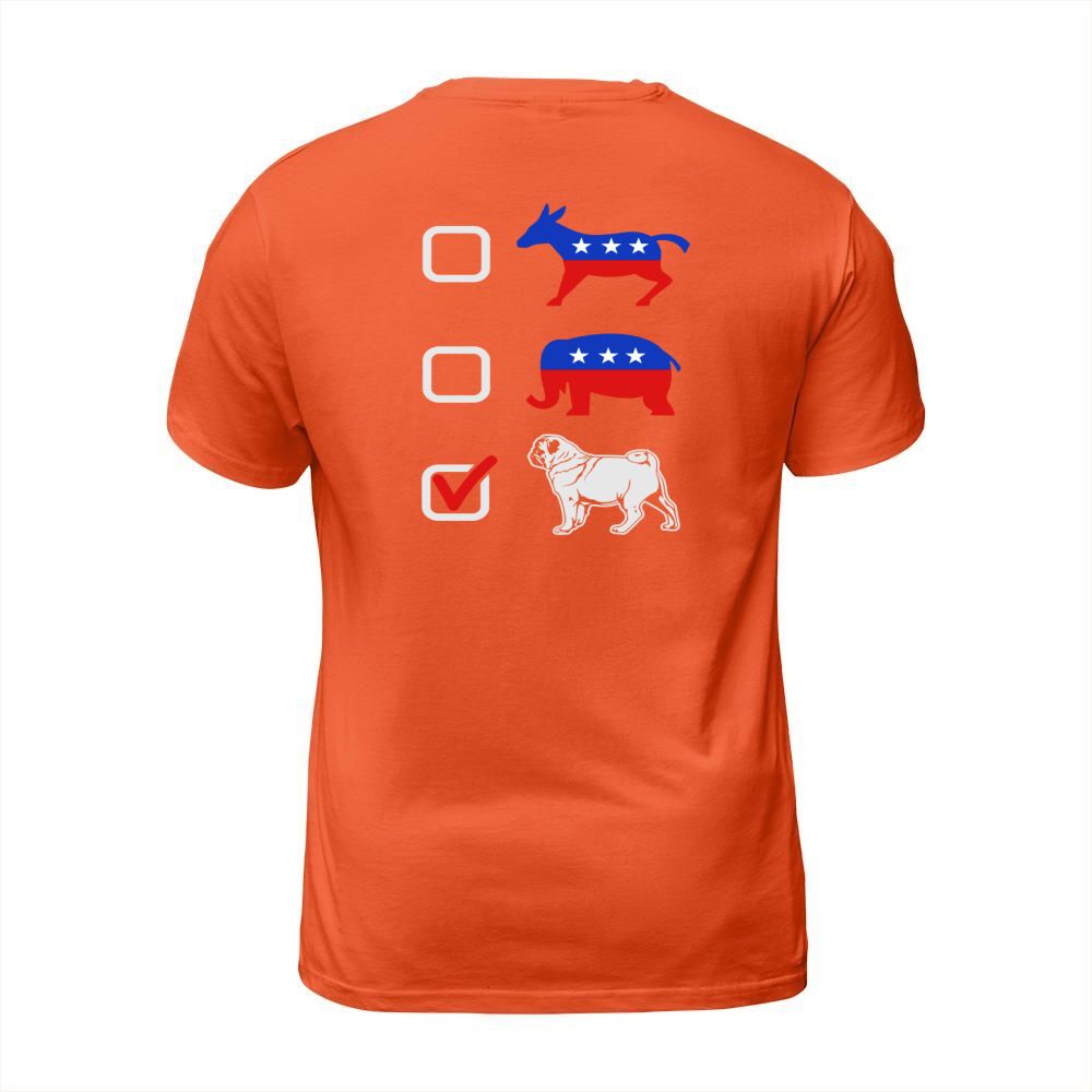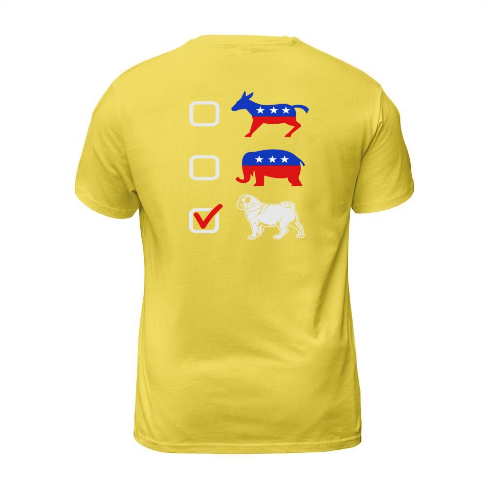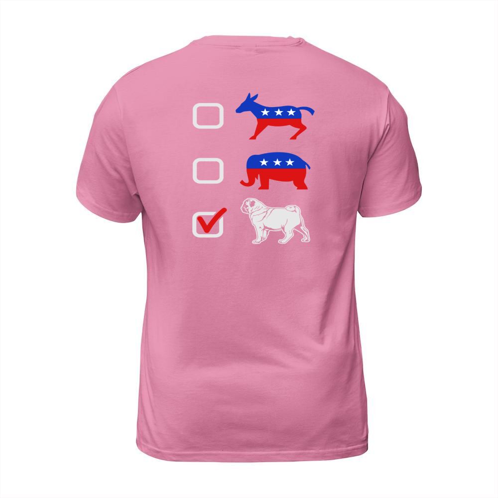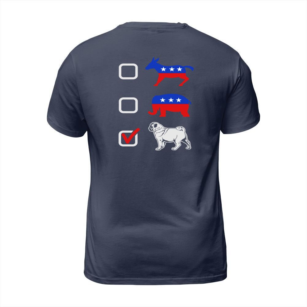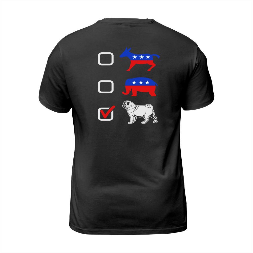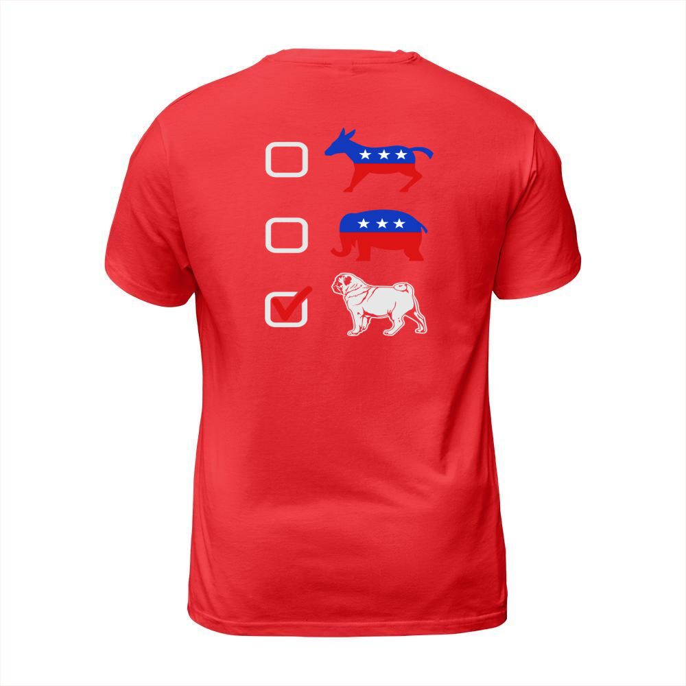 Shop I Vote Pug T-Shirt Unisex custom made just for you. Available on many styles, sizes, and colors.