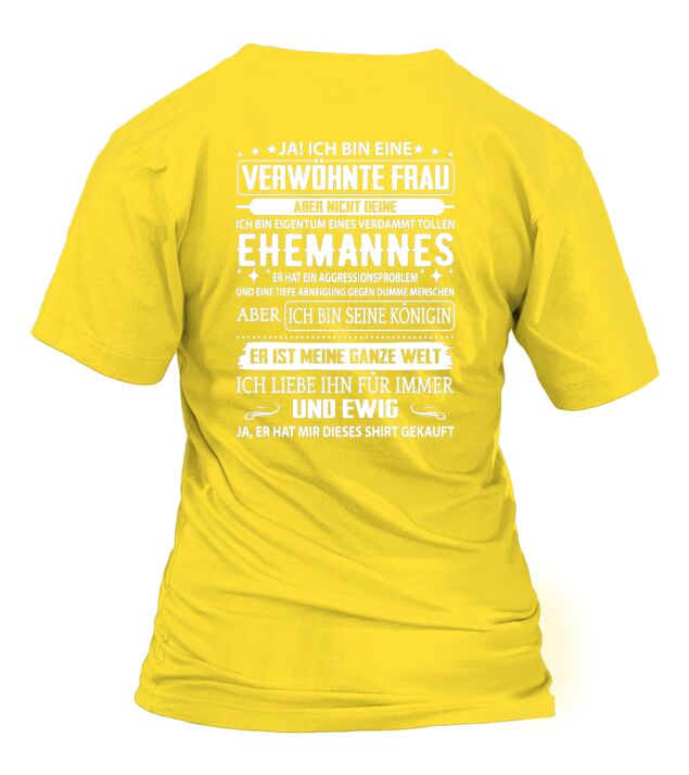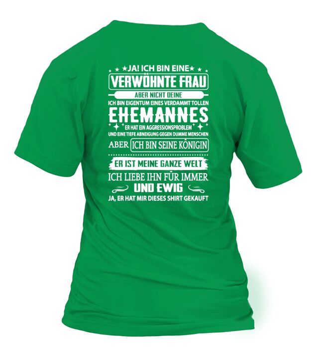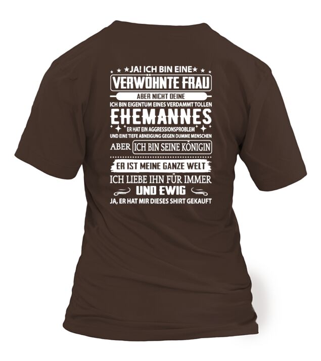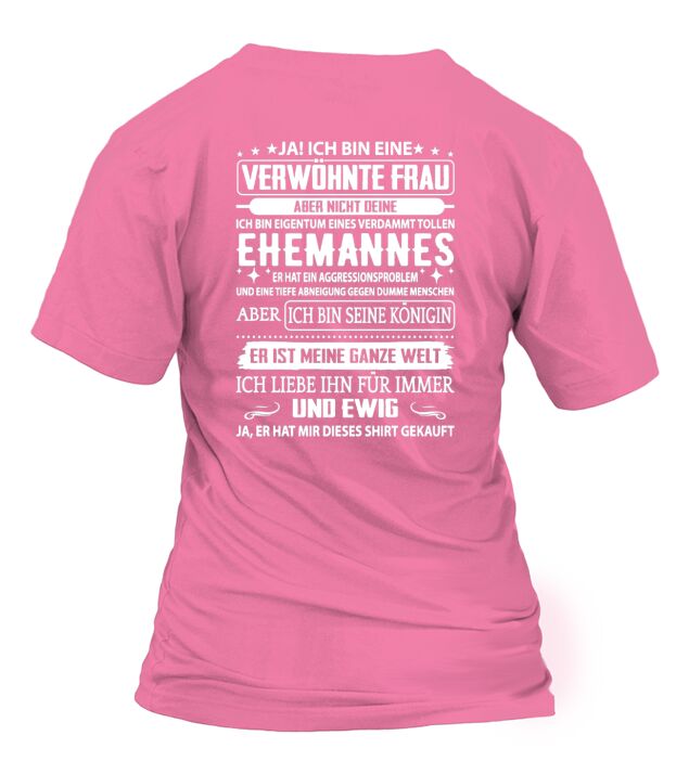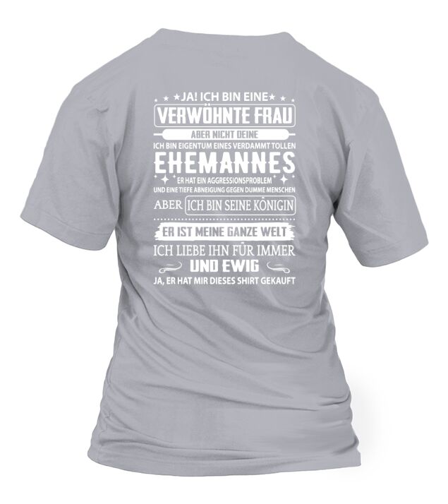 Shop ICH BIN EINE VERWÖHNTE EHEFRAU T-Shirt Woman custom made just for you. Available on many styles, sizes, and colors.