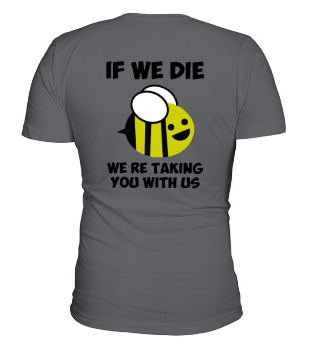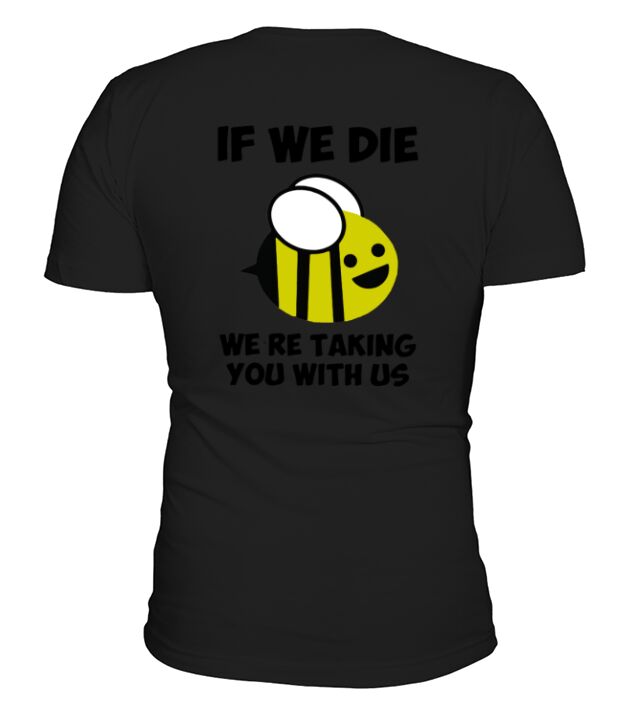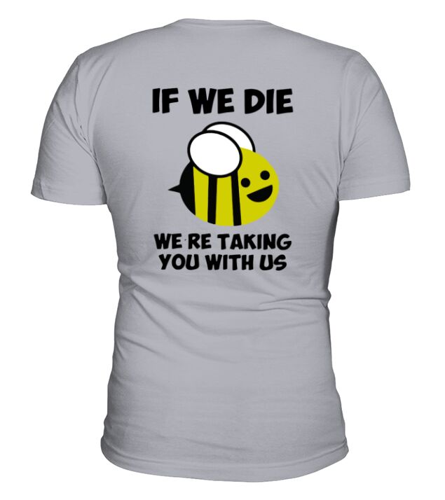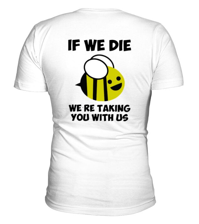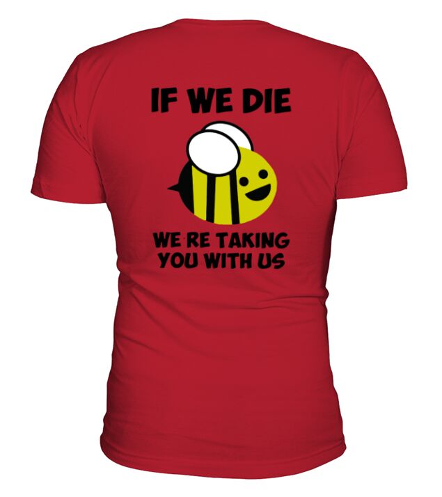 Shop If We Die We’re Taking You With Us Bee V-Neck T-shirt custom made just for you. Available on many styles, sizes, and colors.