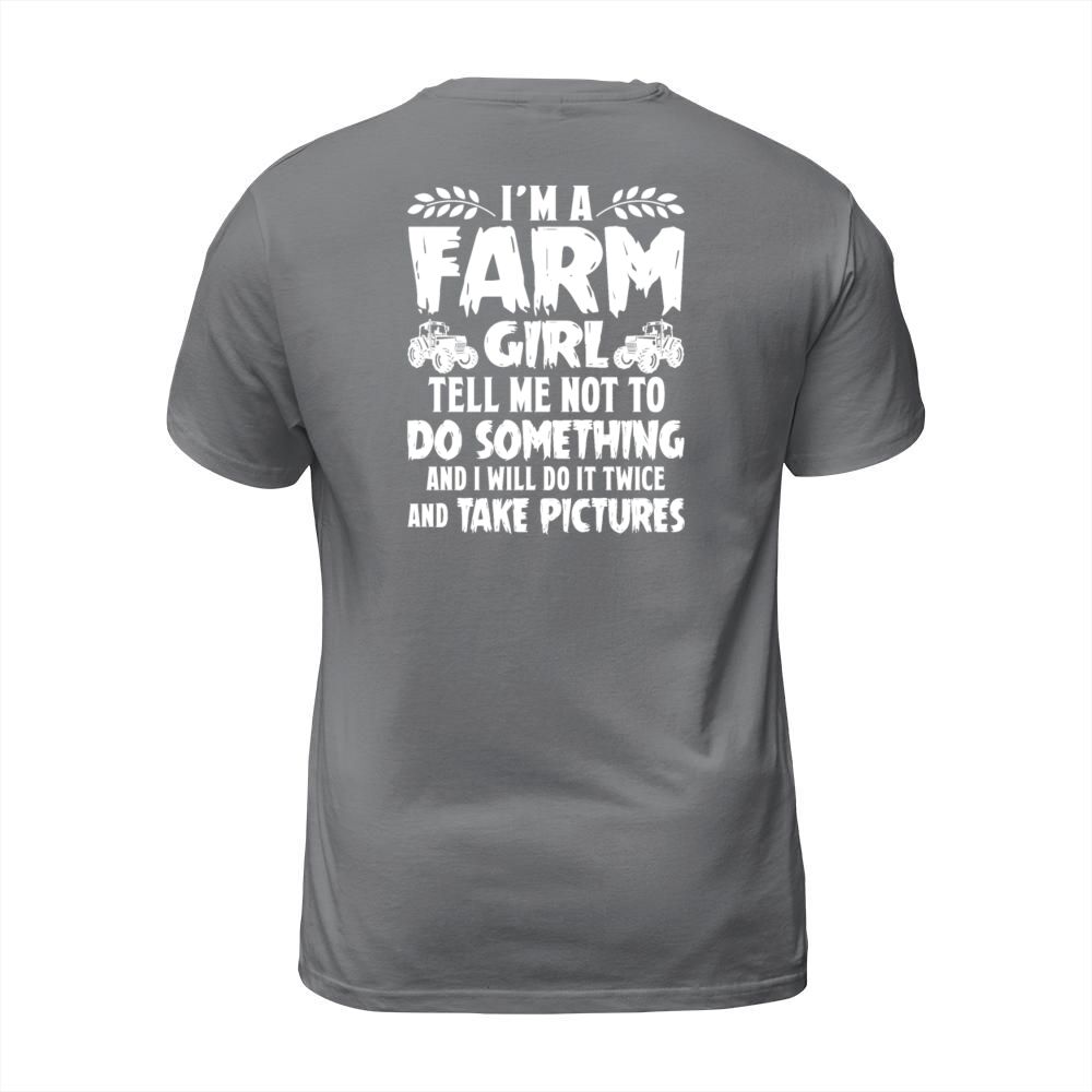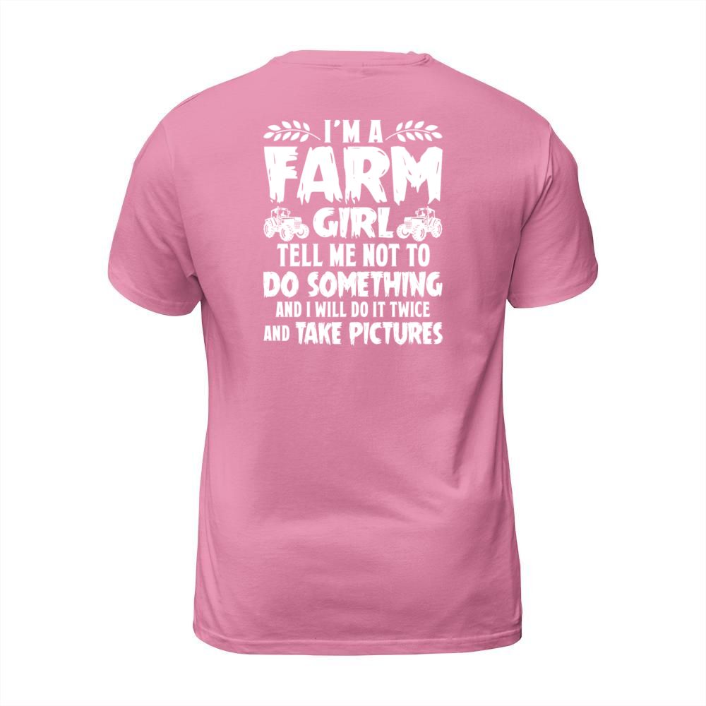 Shop Im A Farm Girl Tell Me Not To Do Something T-Shirt Unisex custom made just for you. Available on many styles, sizes, and colors.
