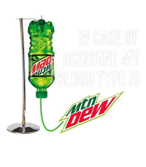 In case of accident my blood type is Mtn Dew