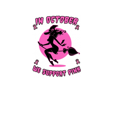 In October We Support Pink Halloween Witch Design