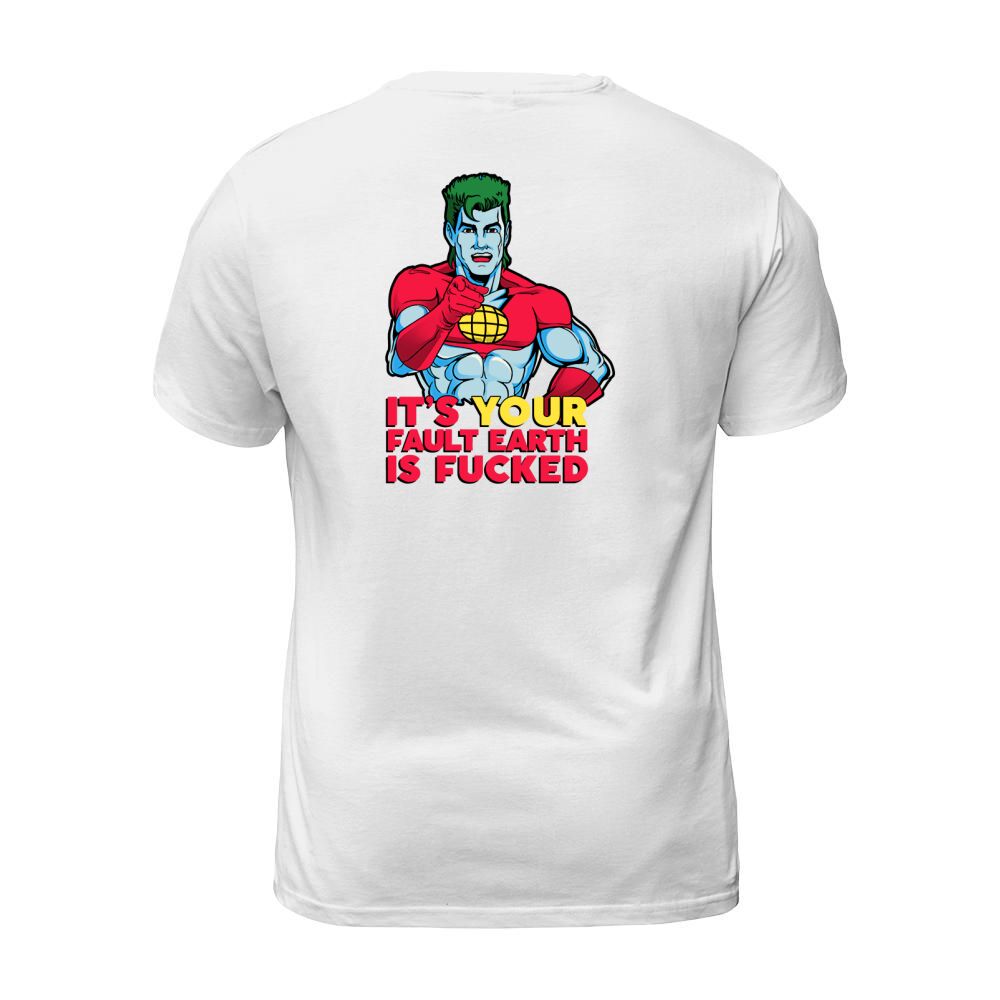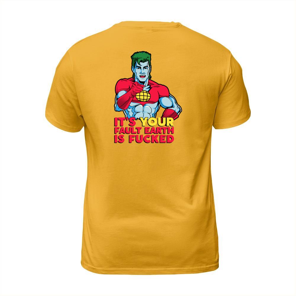 Shop It’s Your Fault Earth Is Fucked Captain Planet T-Shirt Unisex custom made just for you. Available on many styles, sizes, and colors.