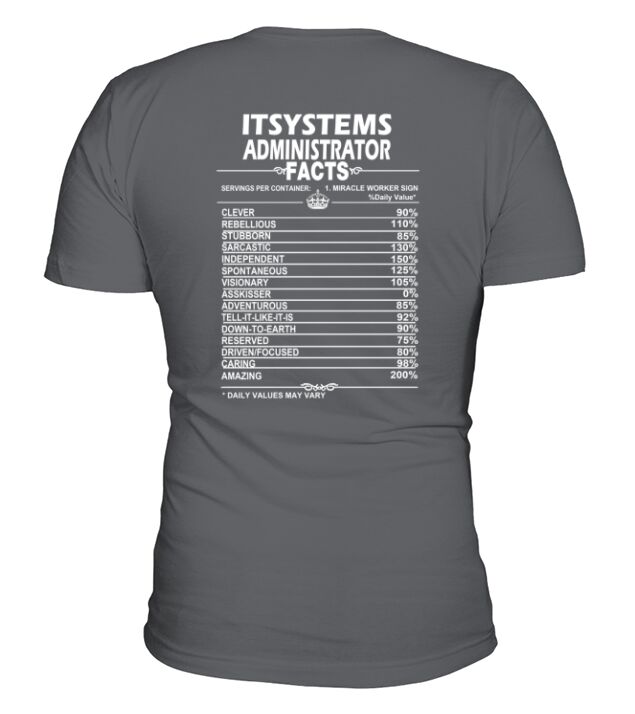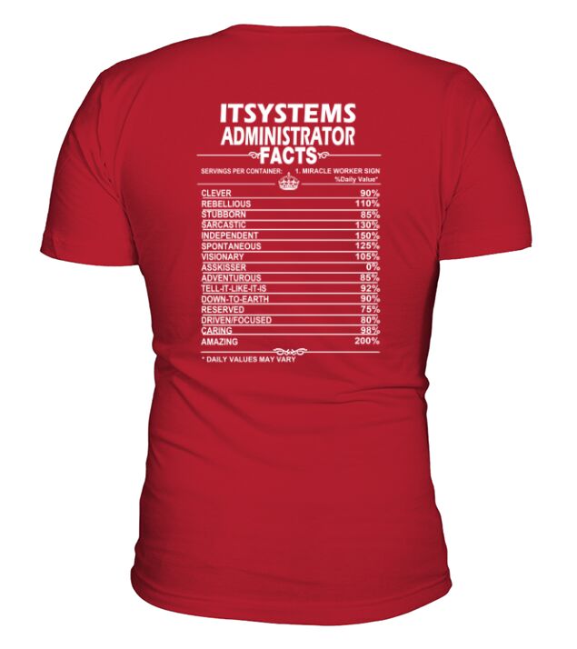 Shop IT SYSTEMS ADMINISTRATOR Job Fact V-Neck T-shirt custom made just for you. Available on many styles, sizes, and colors.