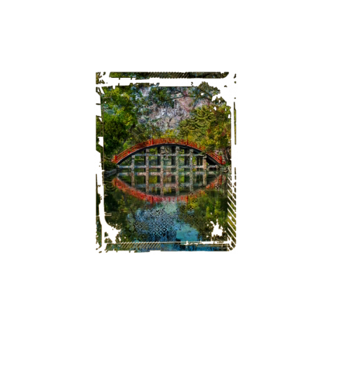 Japanese Garden Red Bridge Water Trees Collage