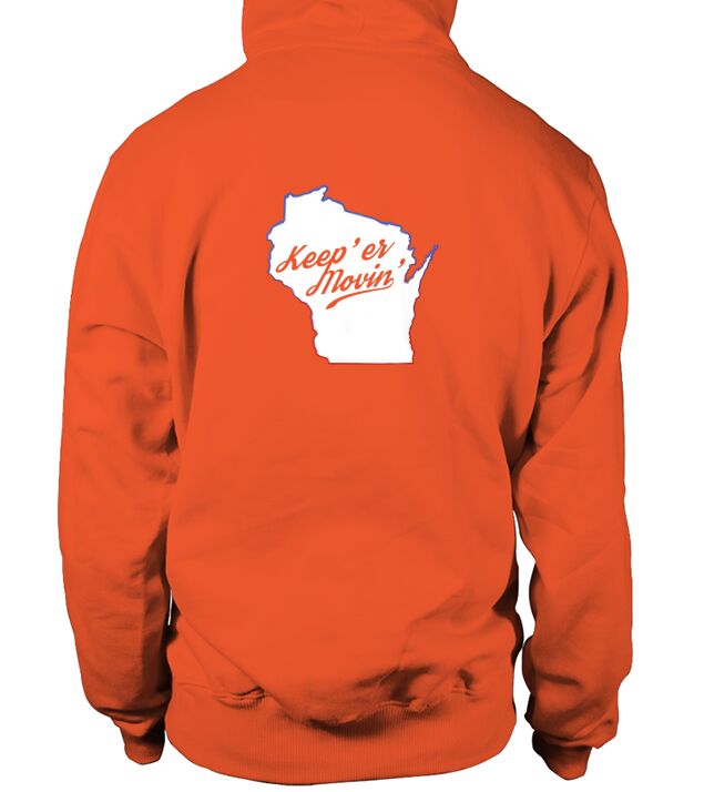 Shop Keep Er Moving Wisconsin Hoodie Unisex custom made just for you. Available on many styles, sizes, and colors.
