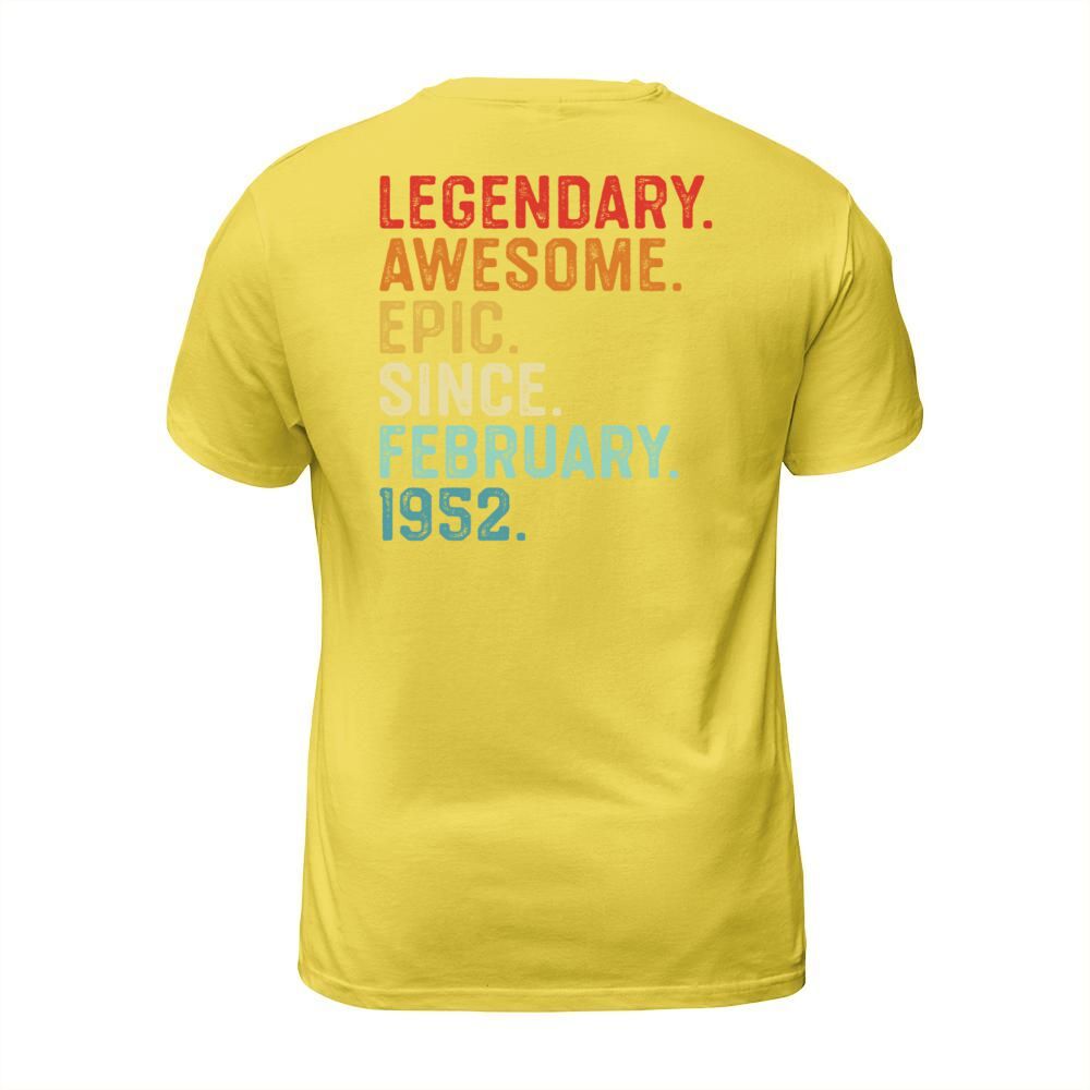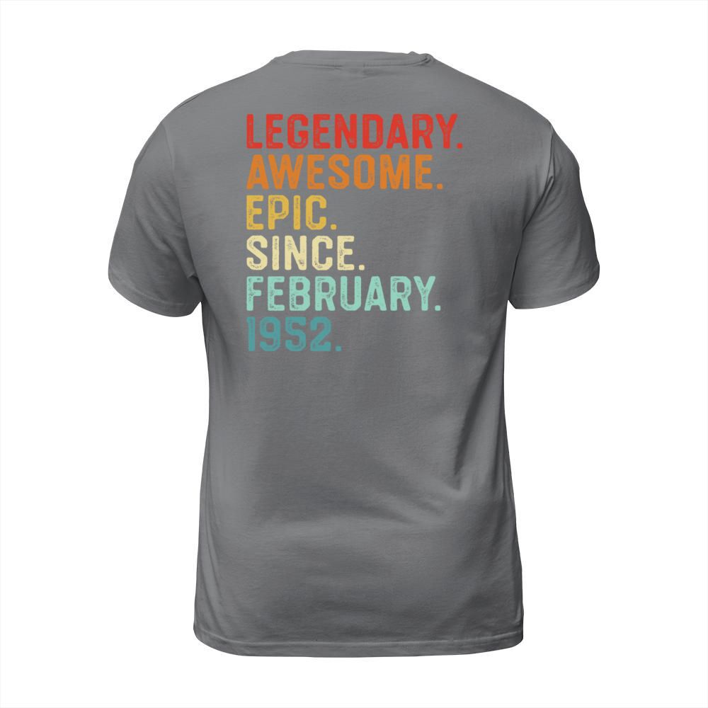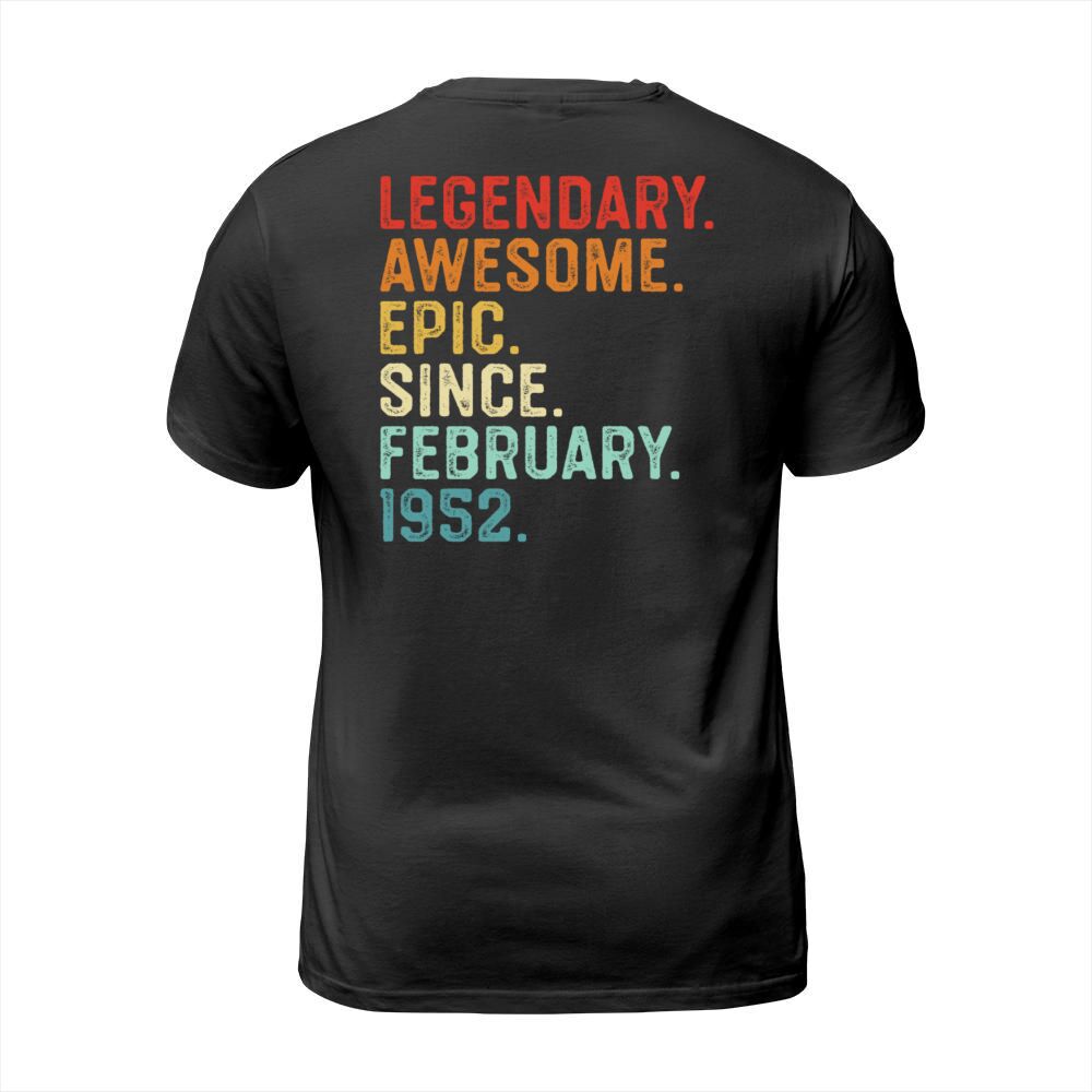 Shop Legendary Awesome Epic Since February 1952 Men's T-Shirt custom made just for you. Available on many styles, sizes, and colors.