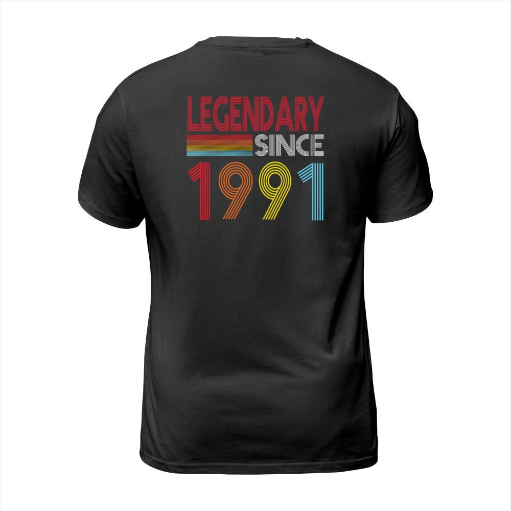 Shop Legendary Since 1991 T-Shirt Unisex custom made just for you. Available on many styles, sizes, and colors.