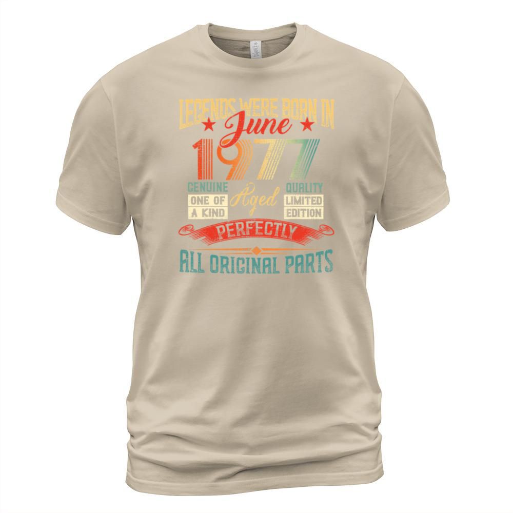 Shop Legends Were Born in June 1977 44 Years Old 44 Men's T-Shirt custom made just for you. Available on many styles, sizes, and colors.