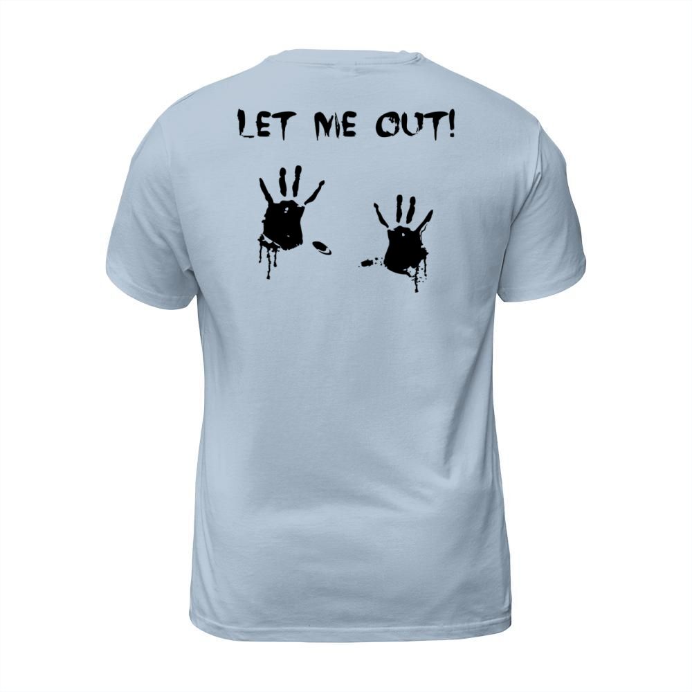 Shop LET ME OUT dripping handprints maternity pregnant Men's T-Shirt custom made just for you. Available on many styles, sizes, and colors.