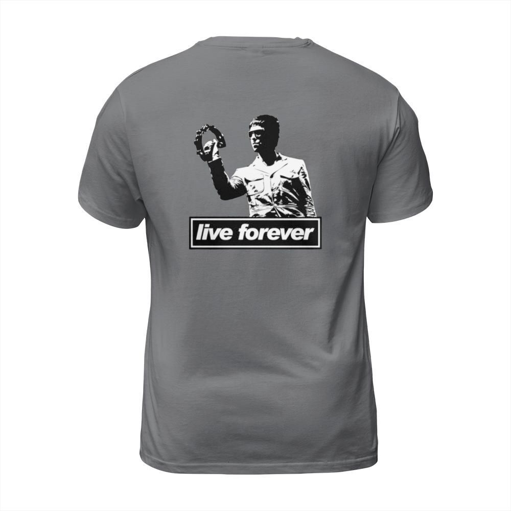 Shop Liam Gallagher Live Forever T-Shirt Unisex custom made just for you. Available on many styles, sizes, and colors.
